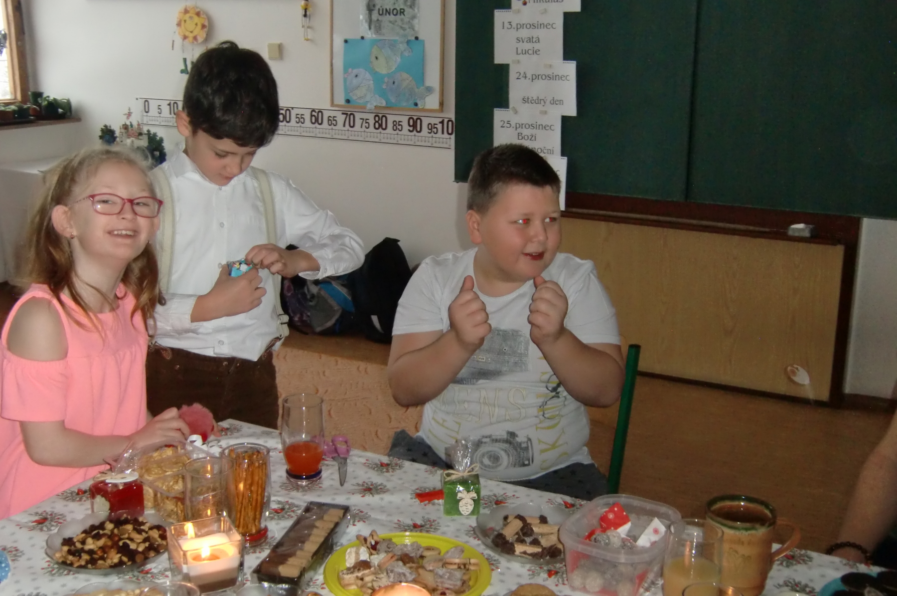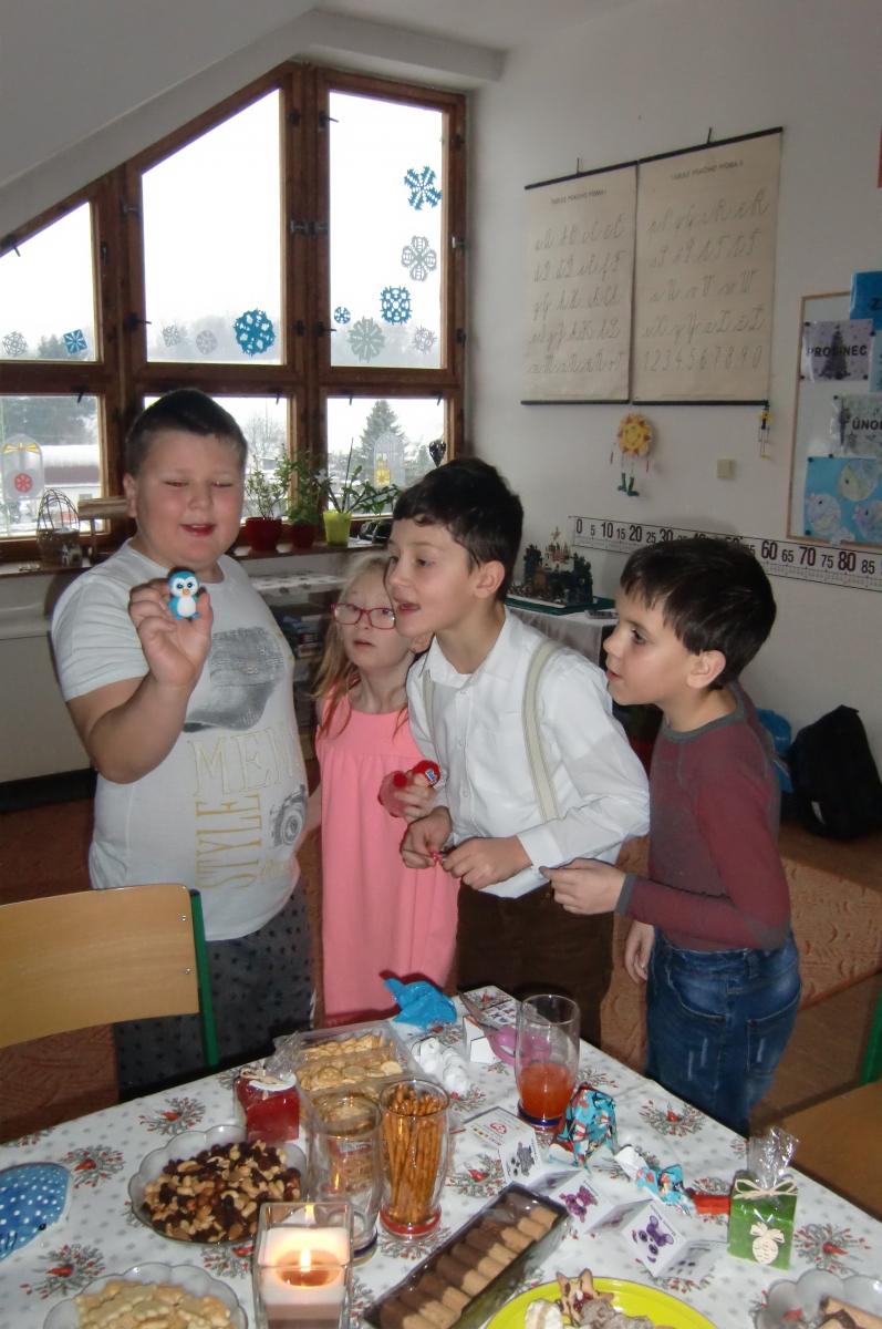 A máme tady Vánoce. Zatím jenom ve třídě. Ale ty opravdové doma budou co nevidět. Na tenhle den jsme se všichni těšili a připravovali. Pečlivě jsme vyzdobili celou třídu, přichystali pohoštění a dárečky. Po společné hostině jsme rozbalili překvapení od kamarádů. Povídali jsme si také o vánočních zvycích a tradicích. Také o tom, jak vypadají Vánoce u nás doma. Moc se na ně těšíme!