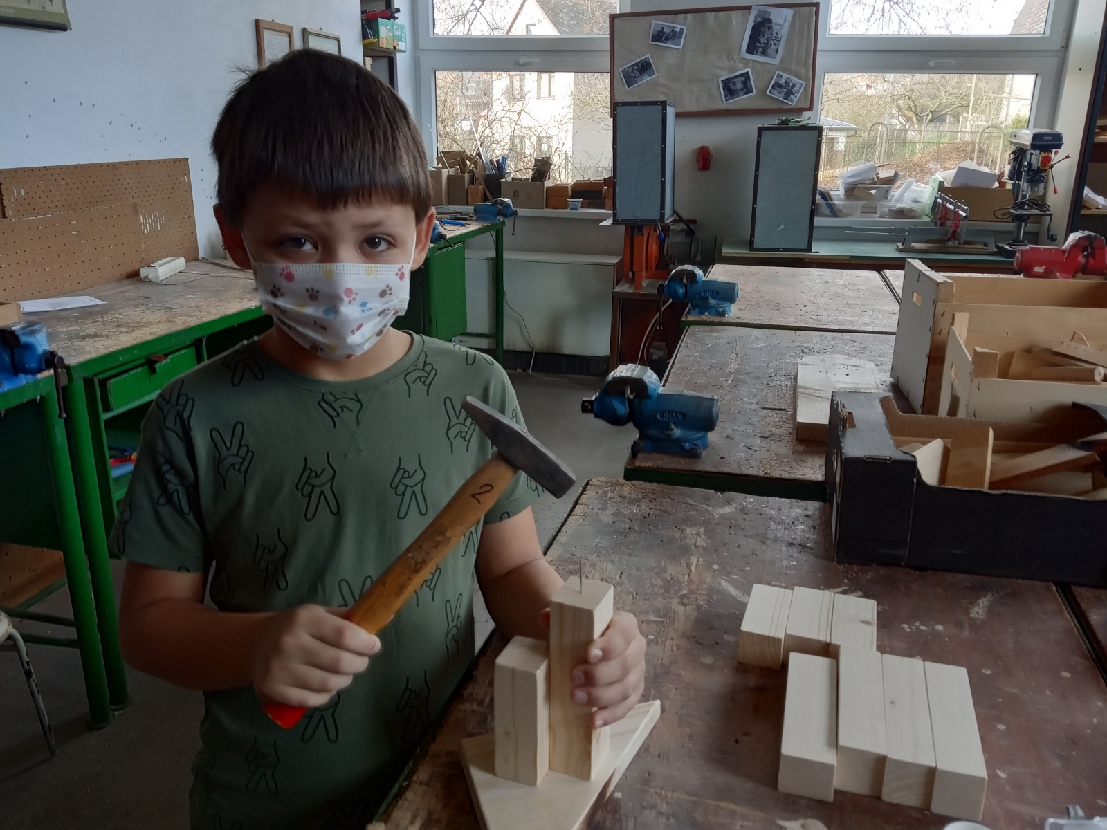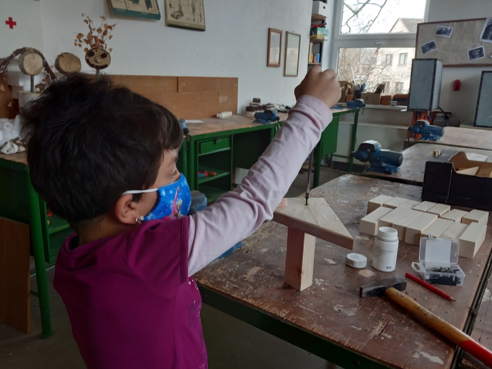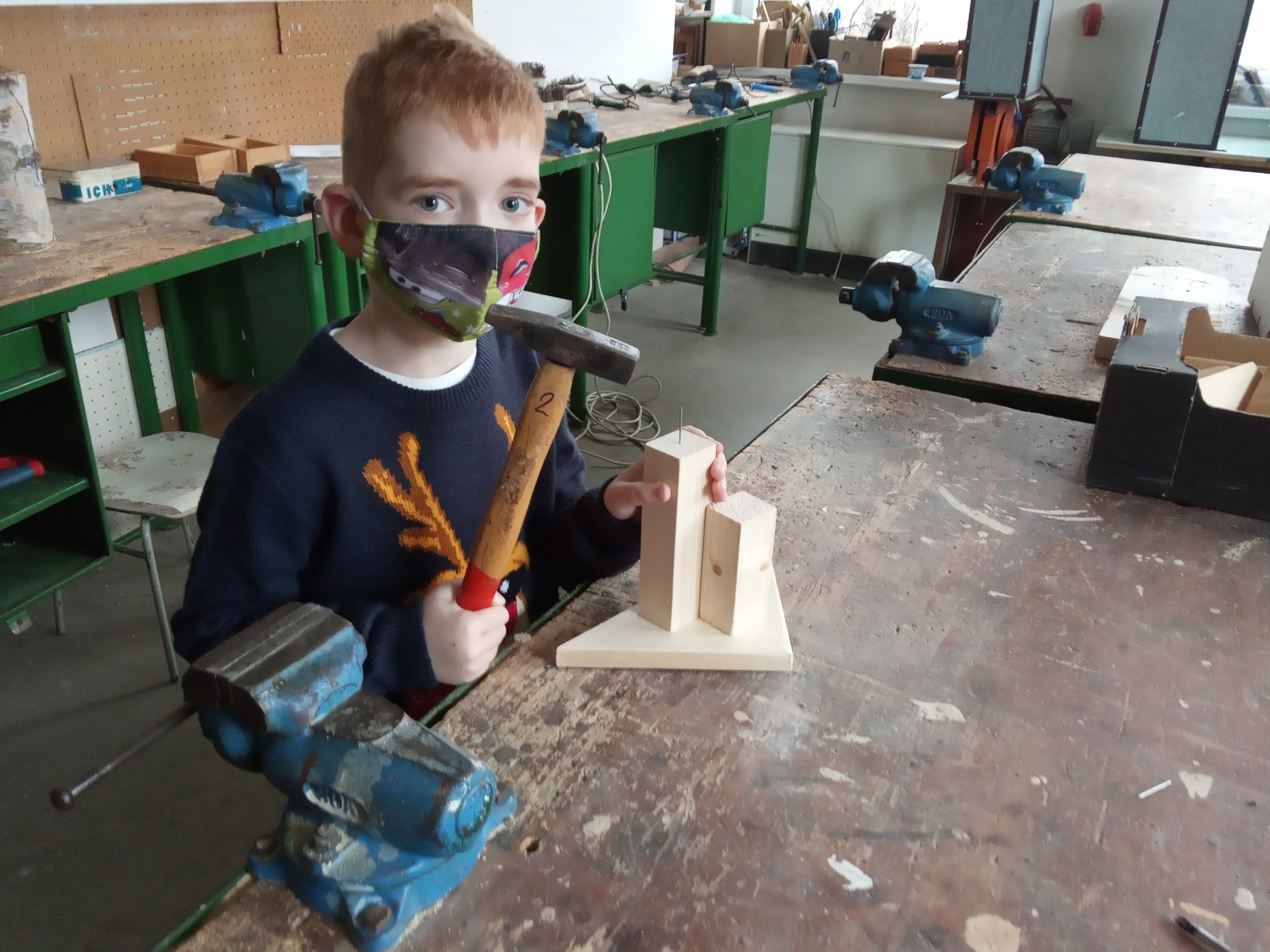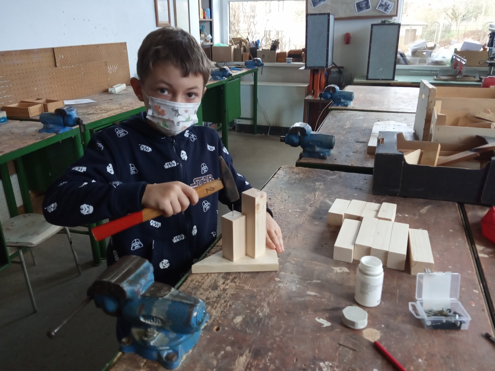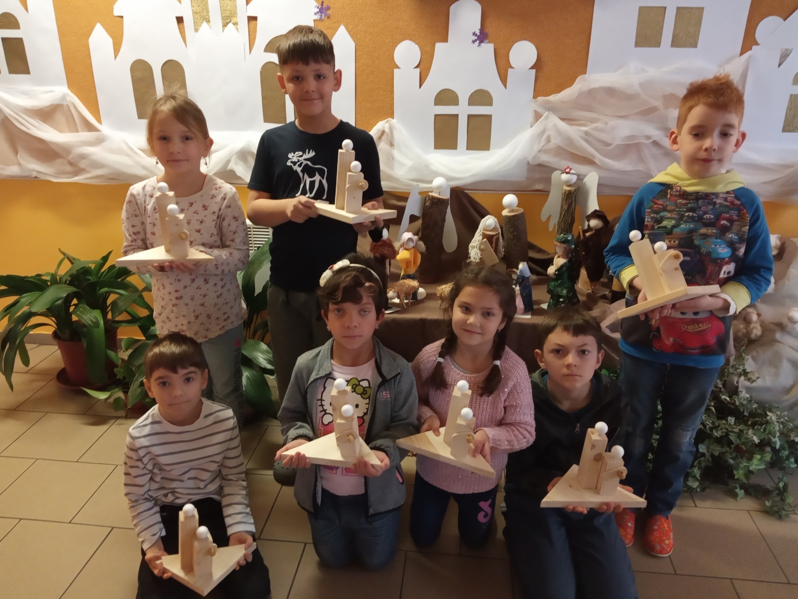 Blížily se Vánoce, a tak jsme v dílnách vyráběli dřevěné betlémy. Prvňáčci si zkusili zatloukat hřebíky a šroubovat vruty do dřeva. Letošní dárek pro maminku se opravdu povedl. Nakonec jsme se vyfotili i se školním betlémem a stromečkem.
