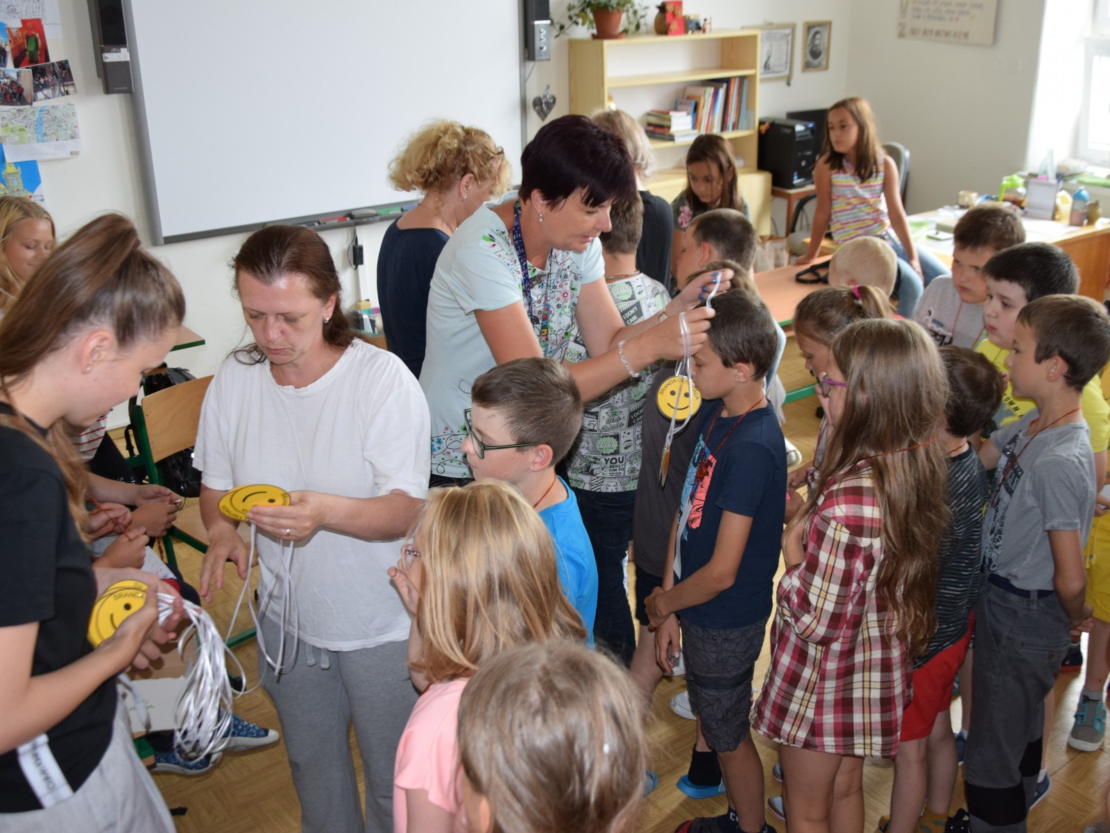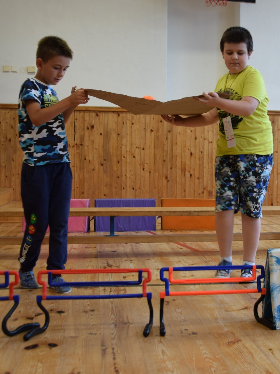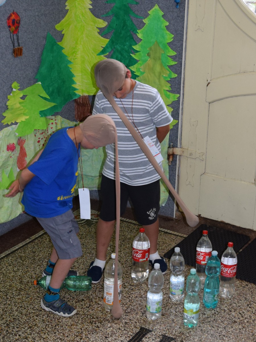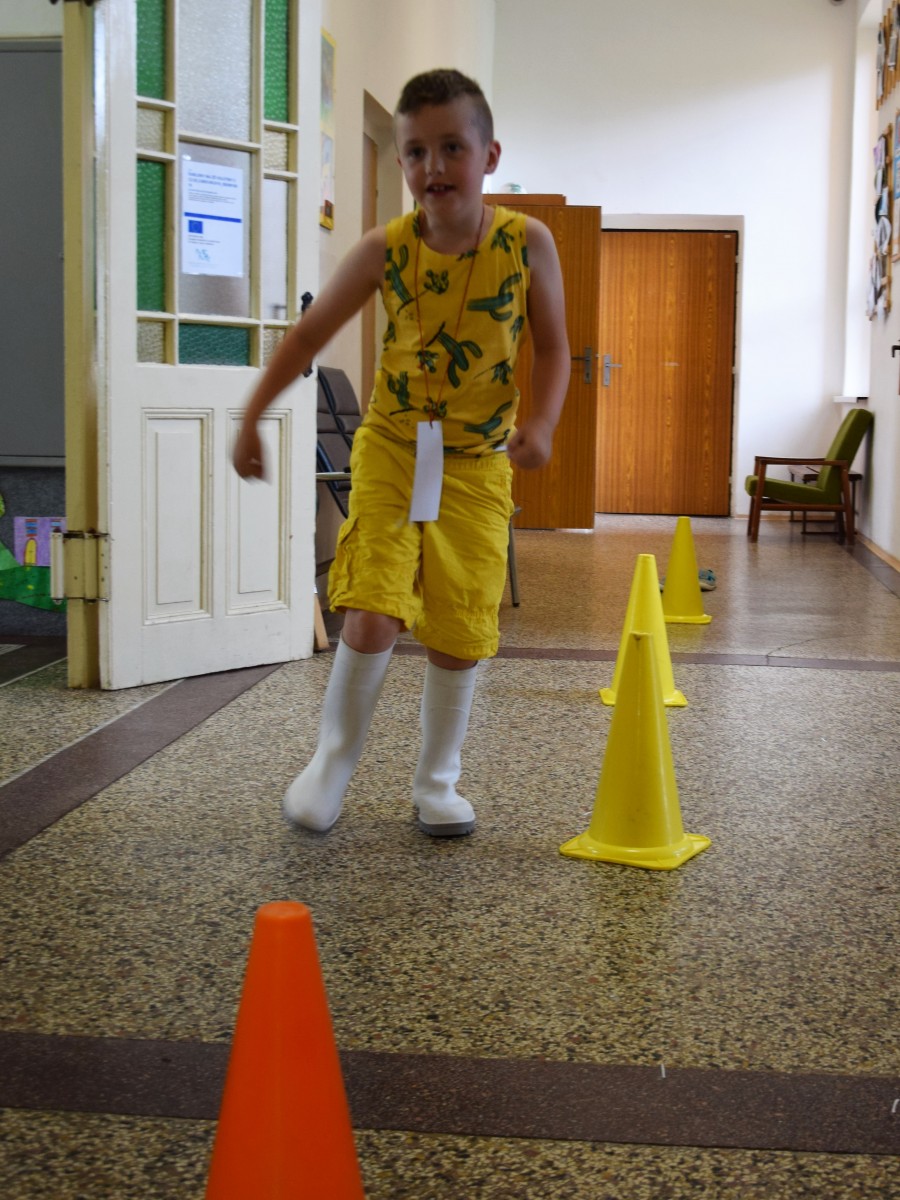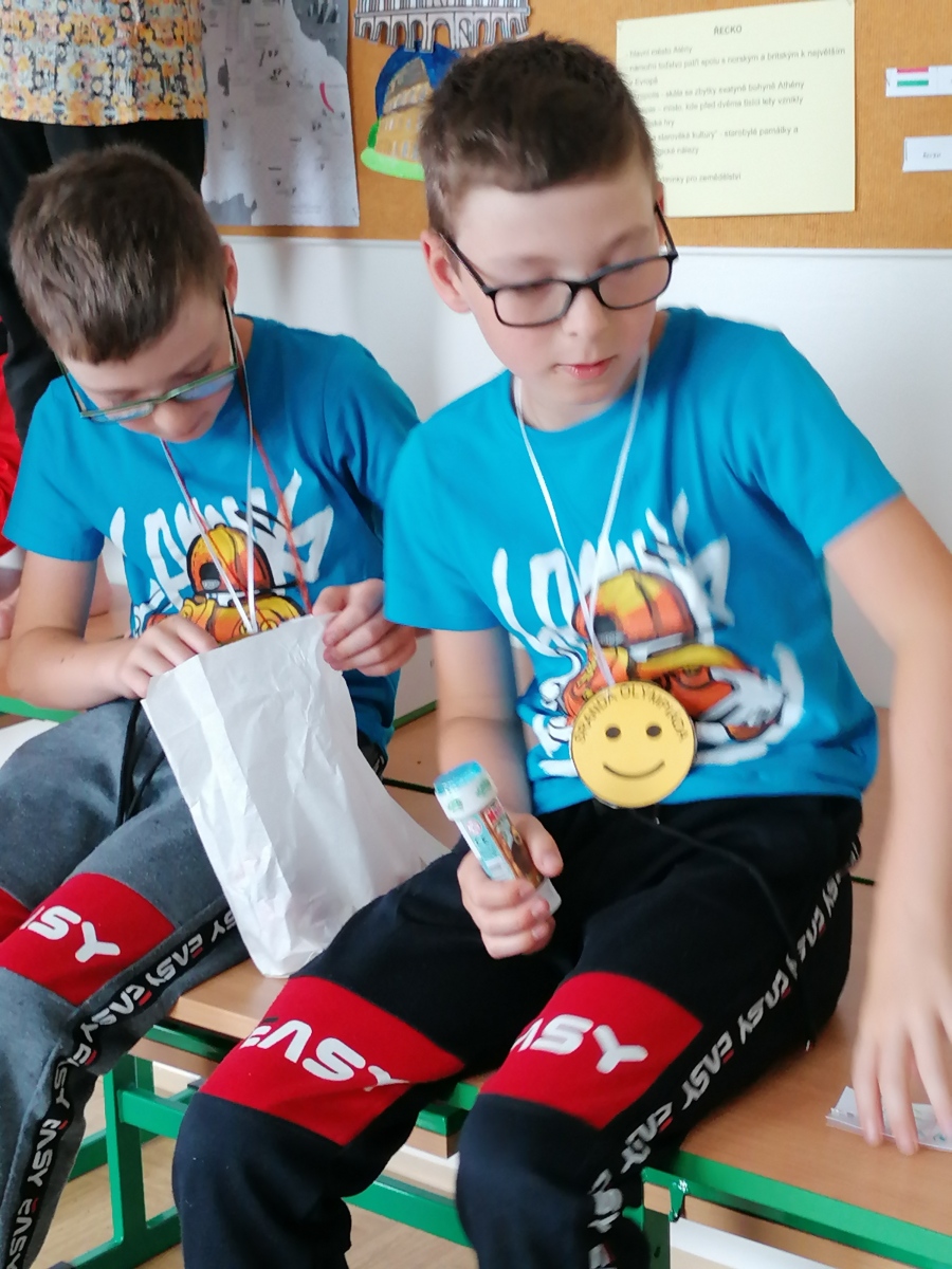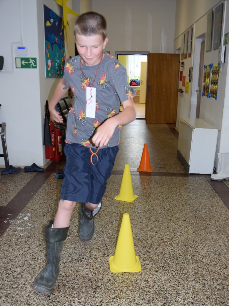 Předposlední školní den si žáci prvního stupně užili jaksepatří. I když se od rána z oblohy valily proudy deště, nenechali si zkazit náladu, sportovali a hráli si. Byla jich plná chodba, družina, jídelna i tělocvična. Na své si přišli milovníci boulované, pytlované, bludiště, překážkové dráhy, řetězovky, chůd, her s názvy Chyť a nepusť, Zrcadlení, Lov, Pozor na piraně, Rýžování zlata nebo Kimovy hry. Vyrobili si antistresového smajlíka a při odpolední družině se dočkali i pěkného počasí a slibované vodní bitvy.