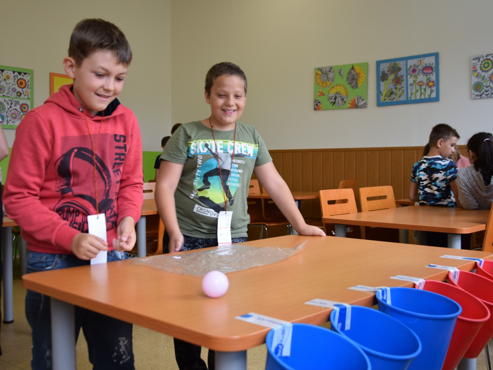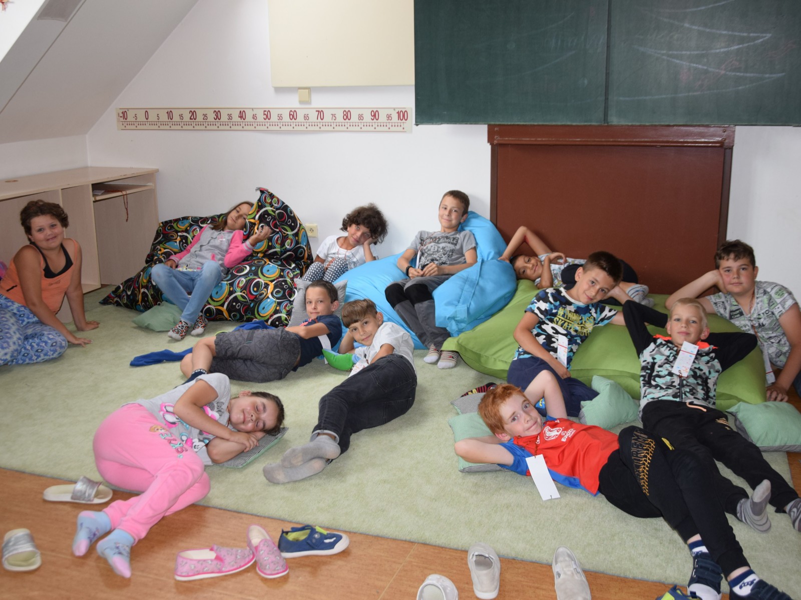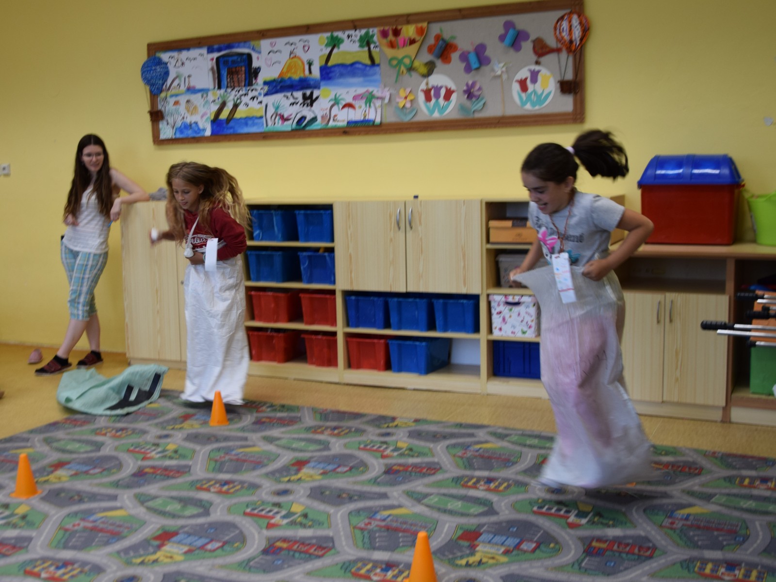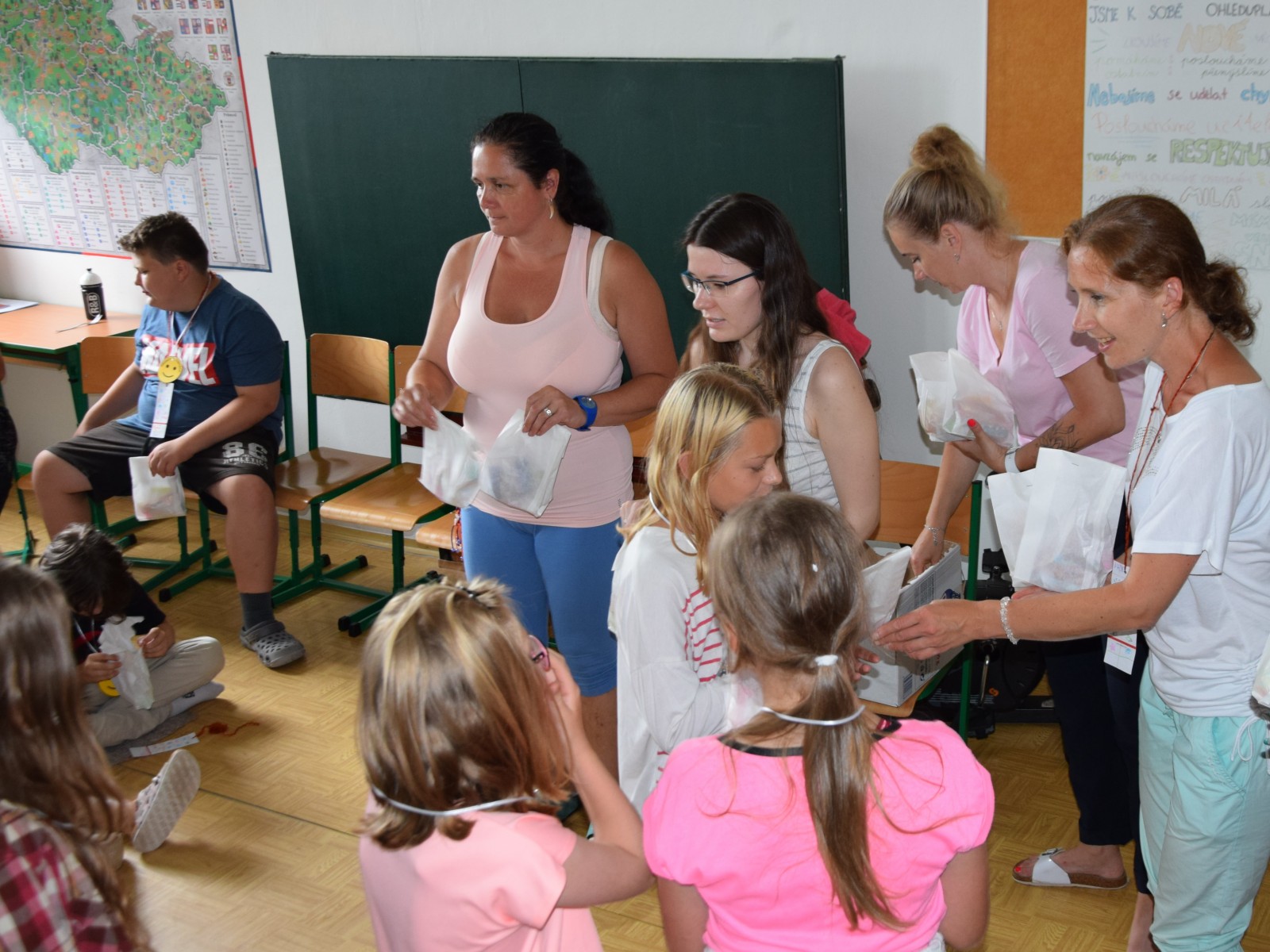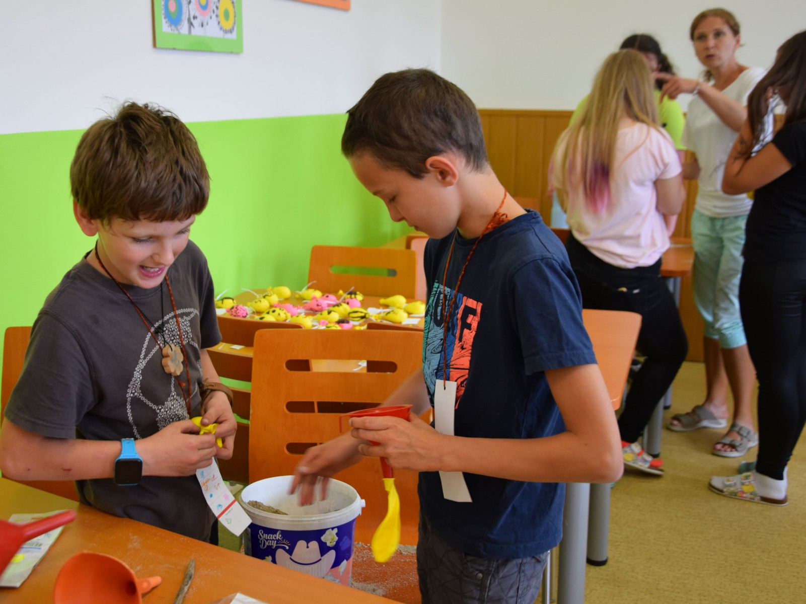 Předposlední školní den si žáci prvního stupně užili jaksepatří. I když se od rána z oblohy valily proudy deště, nenechali si zkazit náladu, sportovali a hráli si. Byla jich plná chodba, družina, jídelna i tělocvična. Na své si přišli milovníci boulované, pytlované, bludiště, překážkové dráhy, řetězovky, chůd, her s názvy Chyť a nepusť, Zrcadlení, Lov, Pozor na piraně, Rýžování zlata nebo Kimovy hry. Vyrobili si antistresového smajlíka a při odpolední družině se dočkali i pěkného počasí a slibované vodní bitvy.