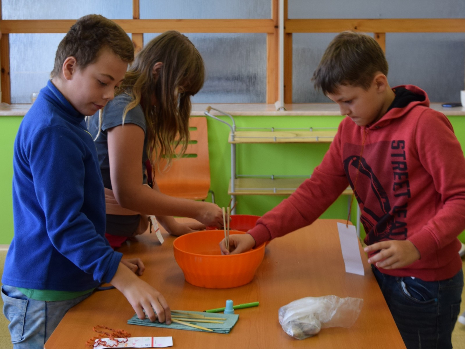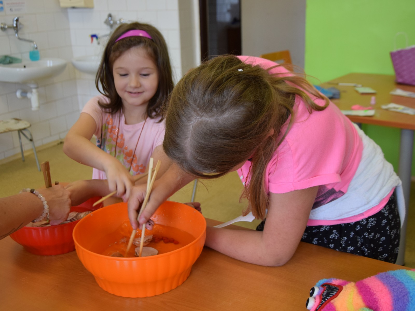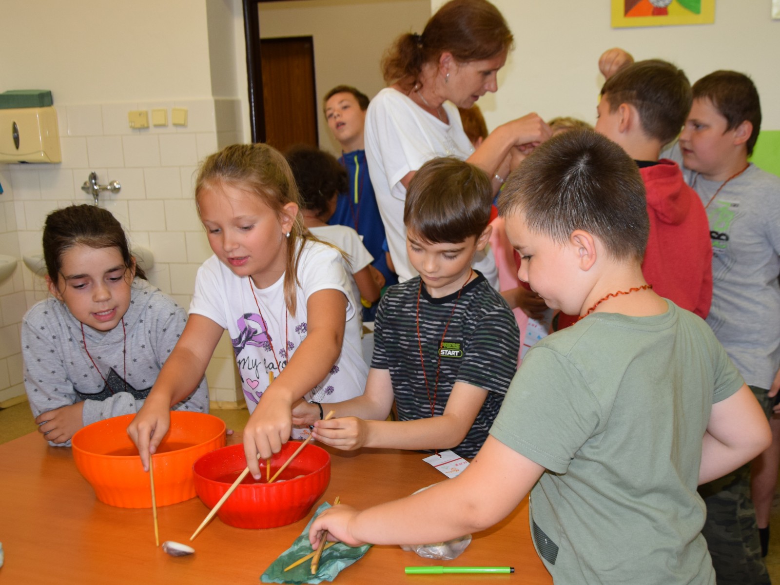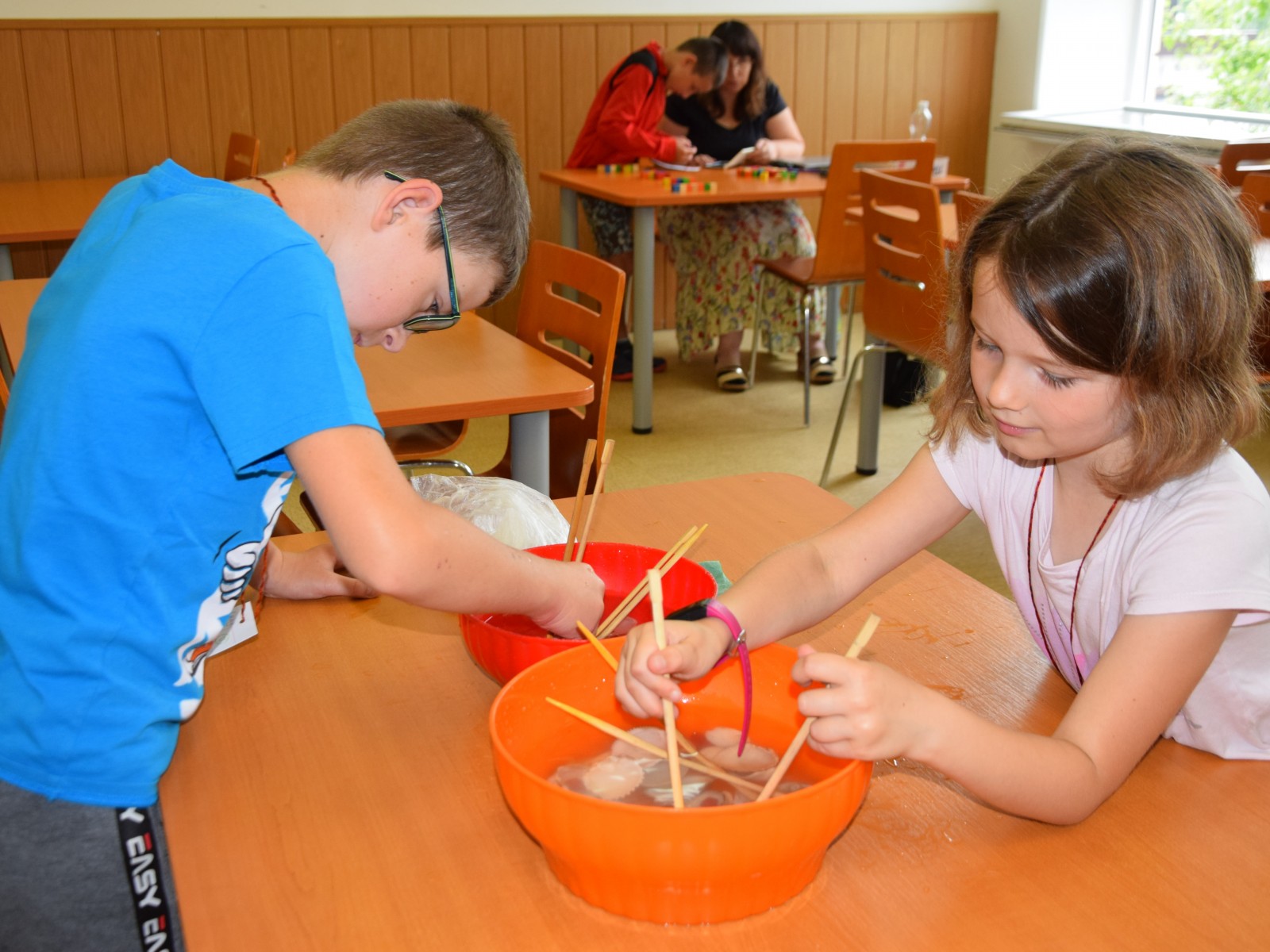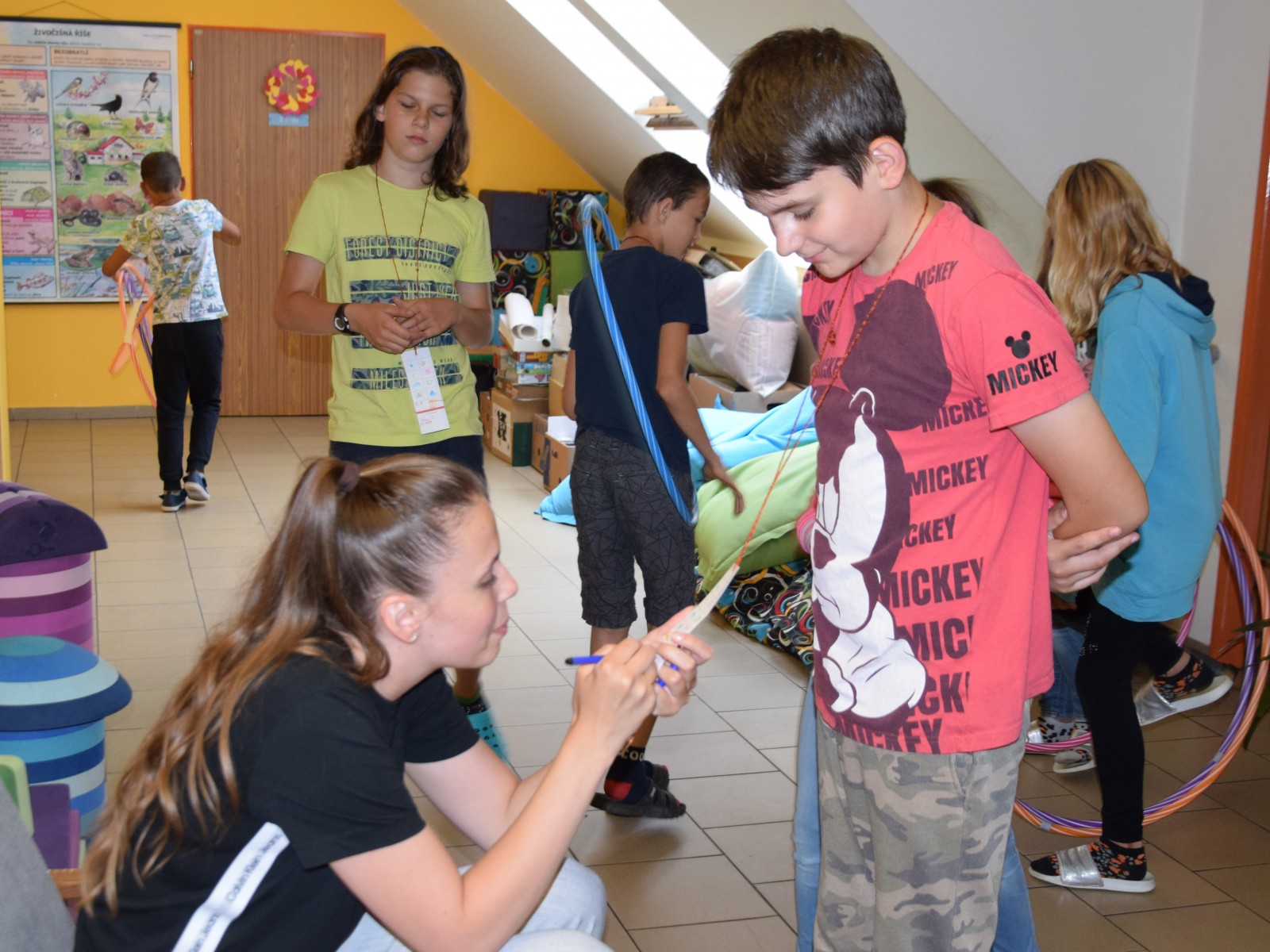 Předposlední školní den si žáci prvního stupně užili jaksepatří. I když se od rána z oblohy valily proudy deště, nenechali si zkazit náladu, sportovali a hráli si. Byla jich plná chodba, družina, jídelna i tělocvična. Na své si přišli milovníci boulované, pytlované, bludiště, překážkové dráhy, řetězovky, chůd, her s názvy Chyť a nepusť, Zrcadlení, Lov, Pozor na piraně, Rýžování zlata nebo Kimovy hry. Vyrobili si antistresového smajlíka a při odpolední družině se dočkali i pěkného počasí a slibované vodní bitvy.