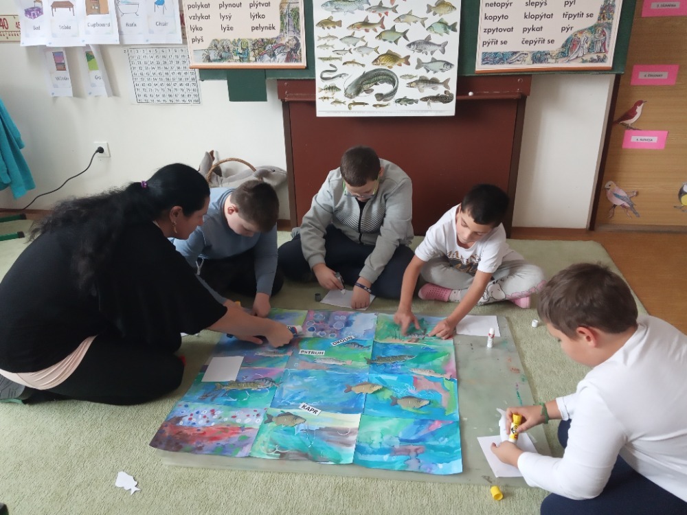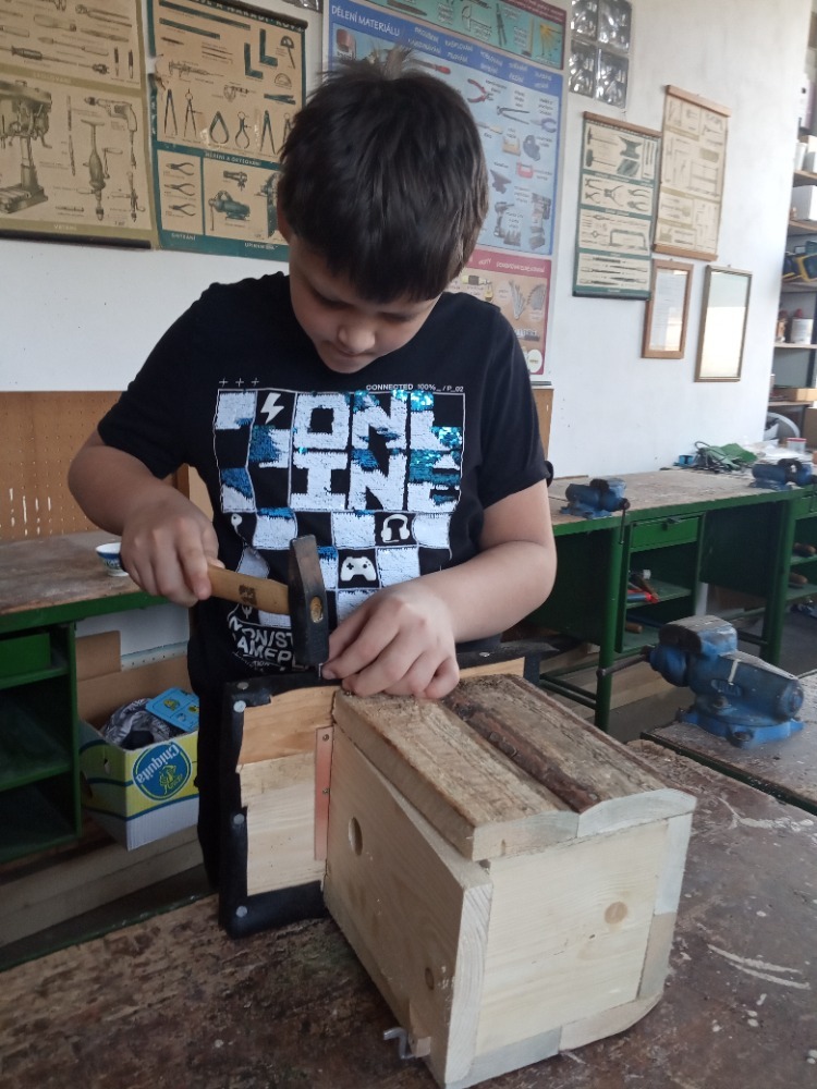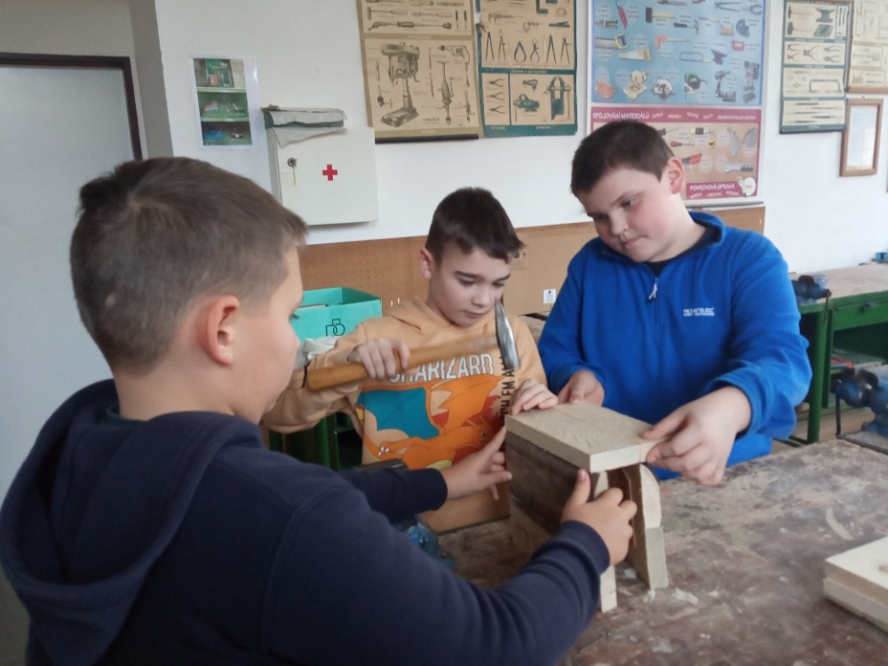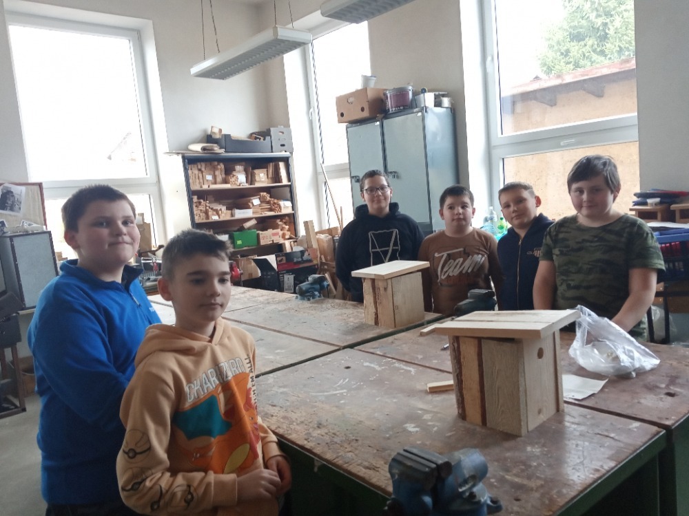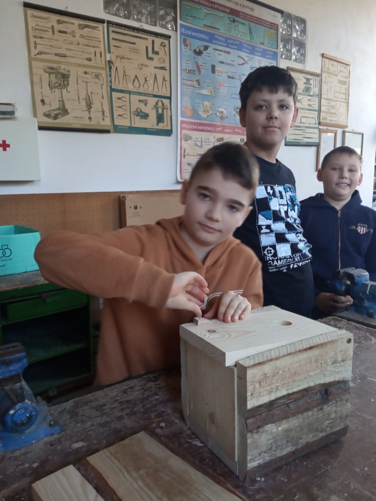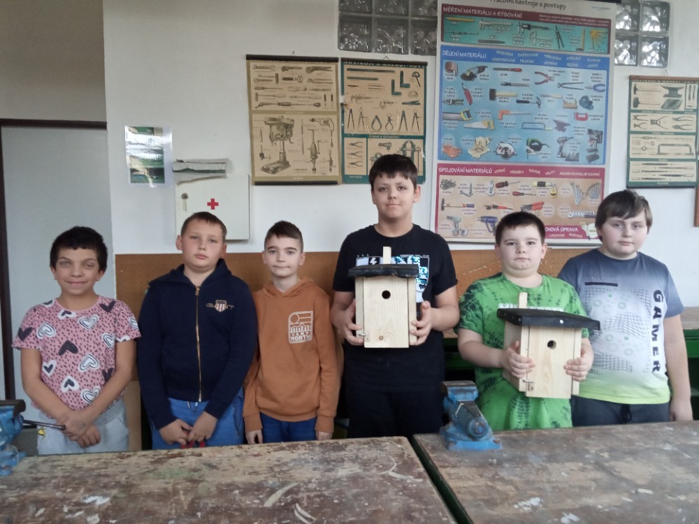 Pracovní vyučování a výtvarná výchova byly propojené s učivem zoologie. Děti vytvořily velkoformátový obraz života pod vodou, ve kterém se proháněly naše dravé i nedravé ryby. Zkusily si rybolovnou techniku a každému se podařilo chytit obrovského kapra. S nadšením se pustily do výroby ptačích hnízdních budek, které budeme v nejbližší době zavěšovat na stromy ve školní zahradě. Aby se vše netočilo jen kolem zvířat, vyrobili jsme také přesýpací hodiny. Ty doplnily naše vědomosti z kapitoly v matematice o jednotkách času a v češtině o příbuzných slovech po S.