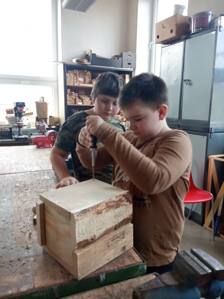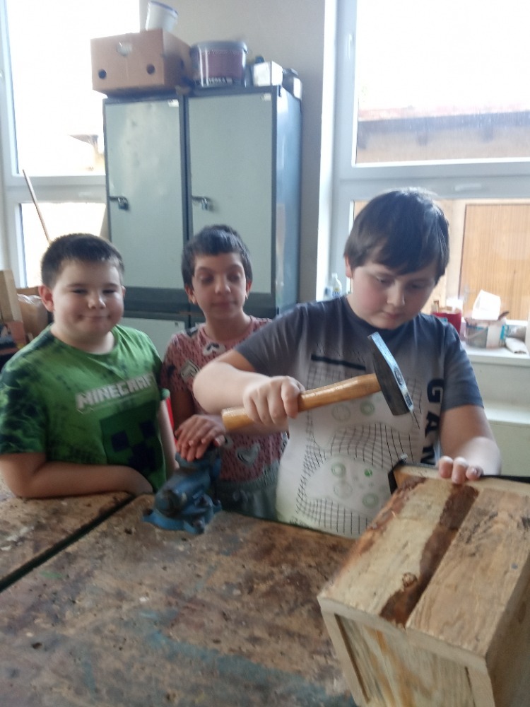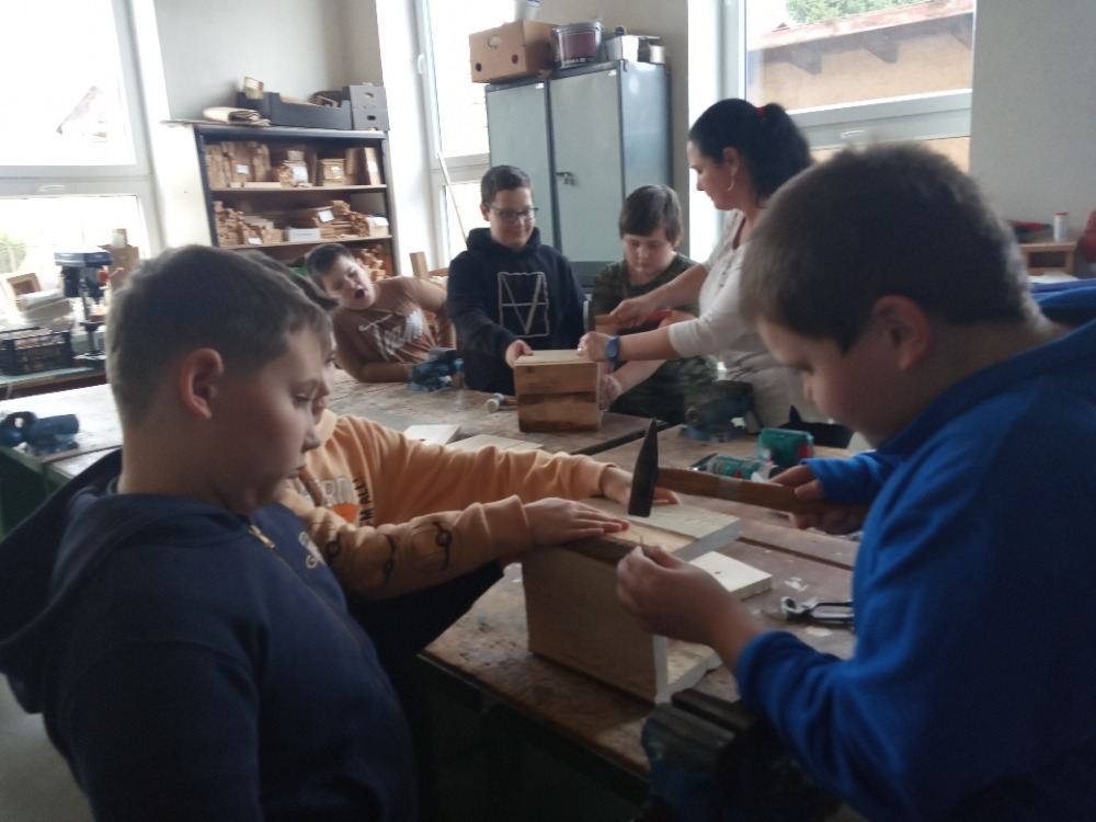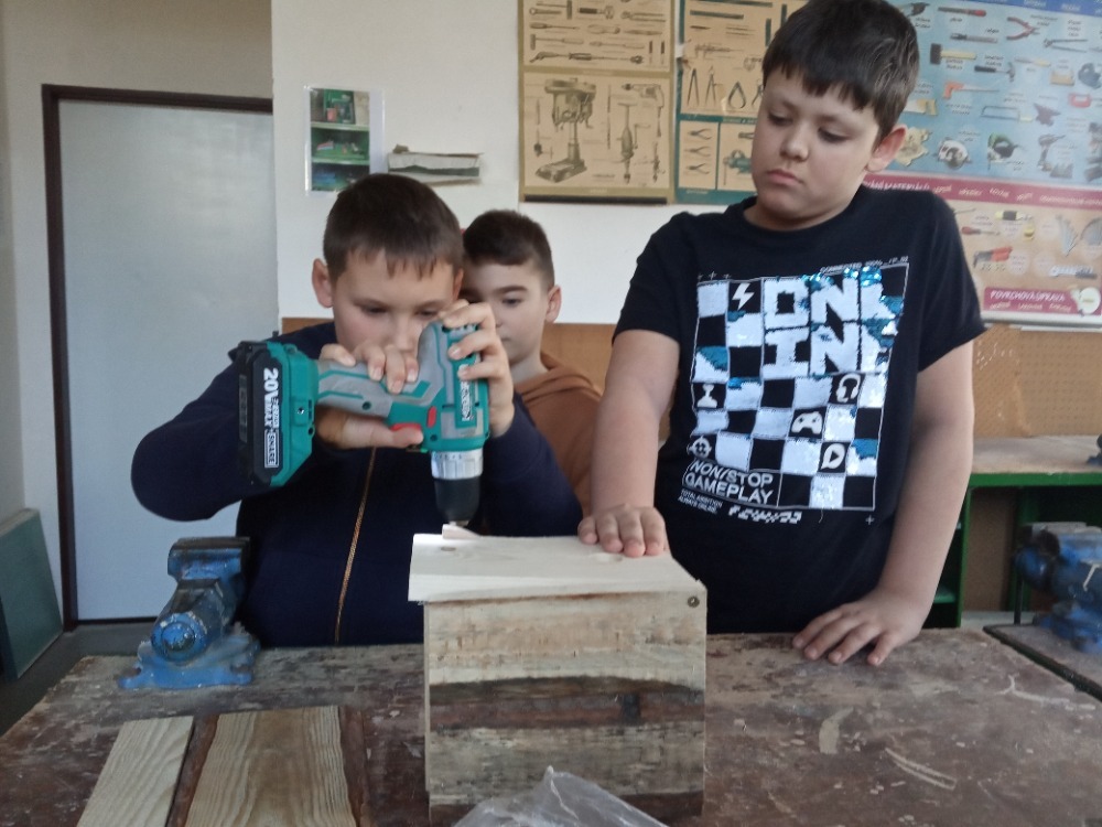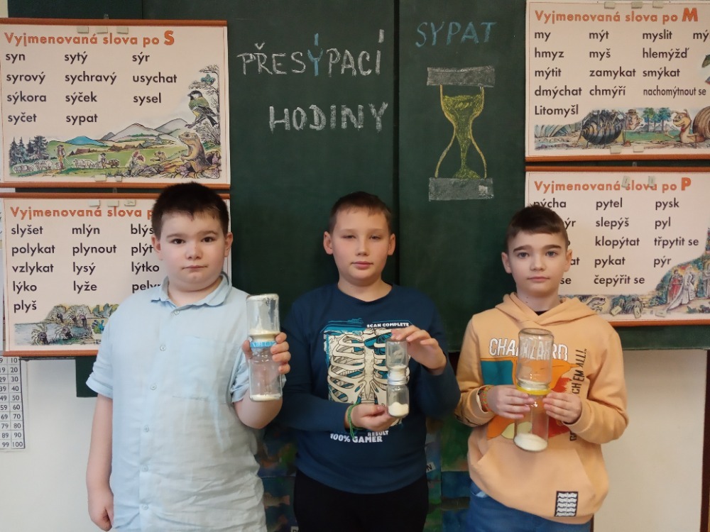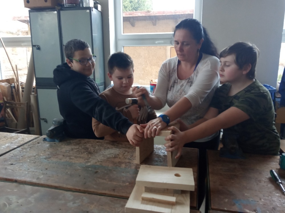 Pracovní vyučování a výtvarná výchova byly propojené s učivem zoologie. Děti vytvořily velkoformátový obraz života pod vodou, ve kterém se proháněly naše dravé i nedravé ryby. Zkusily si rybolovnou techniku a každému se podařilo chytit obrovského kapra. S nadšením se pustily do výroby ptačích hnízdních budek, které budeme v nejbližší době zavěšovat na stromy ve školní zahradě. Aby se vše netočilo jen kolem zvířat, vyrobili jsme také přesýpací hodiny. Ty doplnily naše vědomosti z kapitoly v matematice o jednotkách času a v češtině o příbuzných slovech po S.