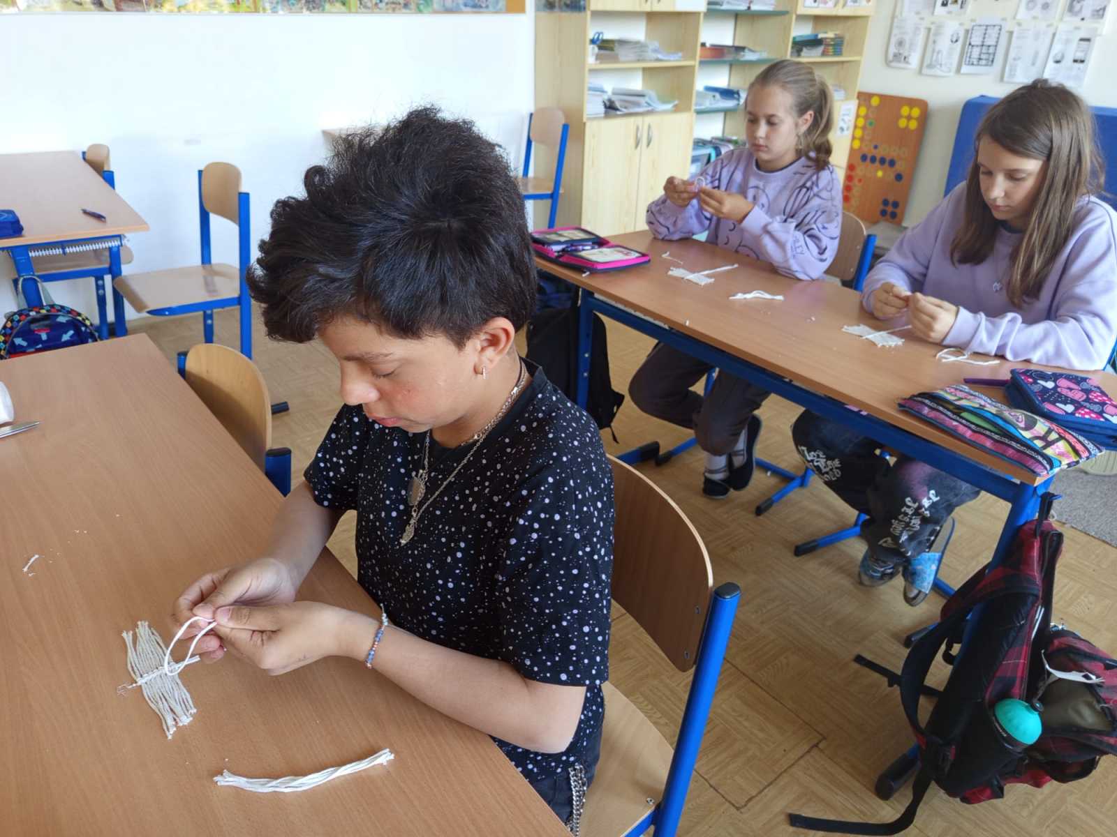 Poslední epocha vlastivědy nás zavedla na cesty po Evropě. Informací bylo plno, a tak jsme si je zpestřili propojením s dalšími učebními předměty. Bruselskou krajku sice neumíme, ale kluci se seznámili se základy háčkování, děvčata si udrhala náušnice. V kuchyňce jsme vařili evropské speciality, při češtině jsme pracovali ve čtenářské dílně s knížkou "Cestování s velrybou". Nakonec jsme si na naše prázdninové putování nabatikovali originální trička.