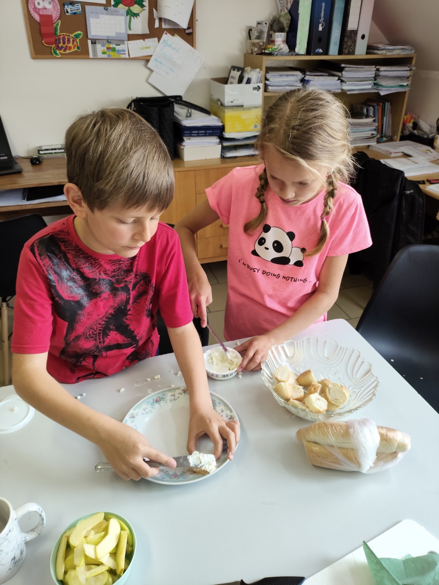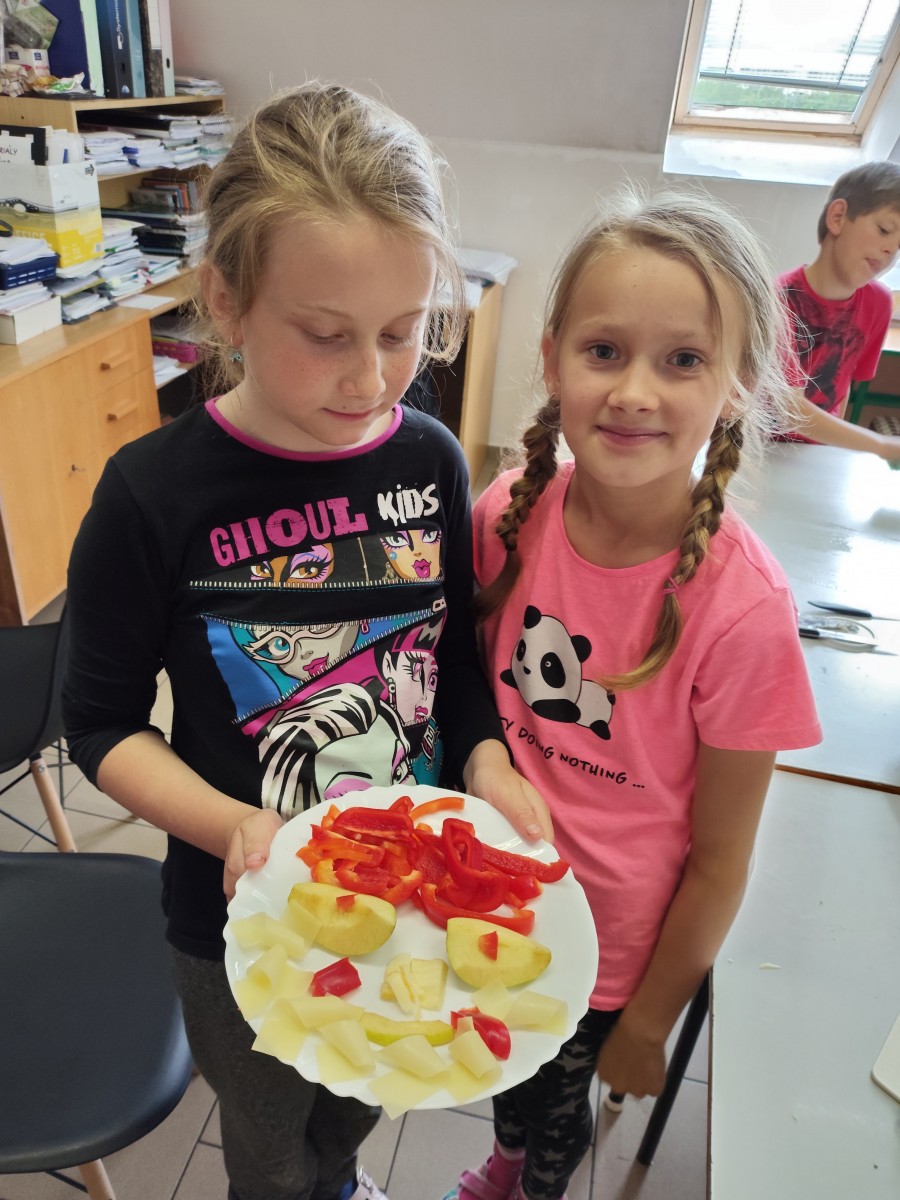 Tak jako i další třídy na naší škole jsme obdrželi vybrané mléčné výrobky. K tomu ještě papriky a jablíčka. Neodolali jsme a vyrobili jsme si výbornou svačinku. Mňam! Určitě to někdy zopakujeme.