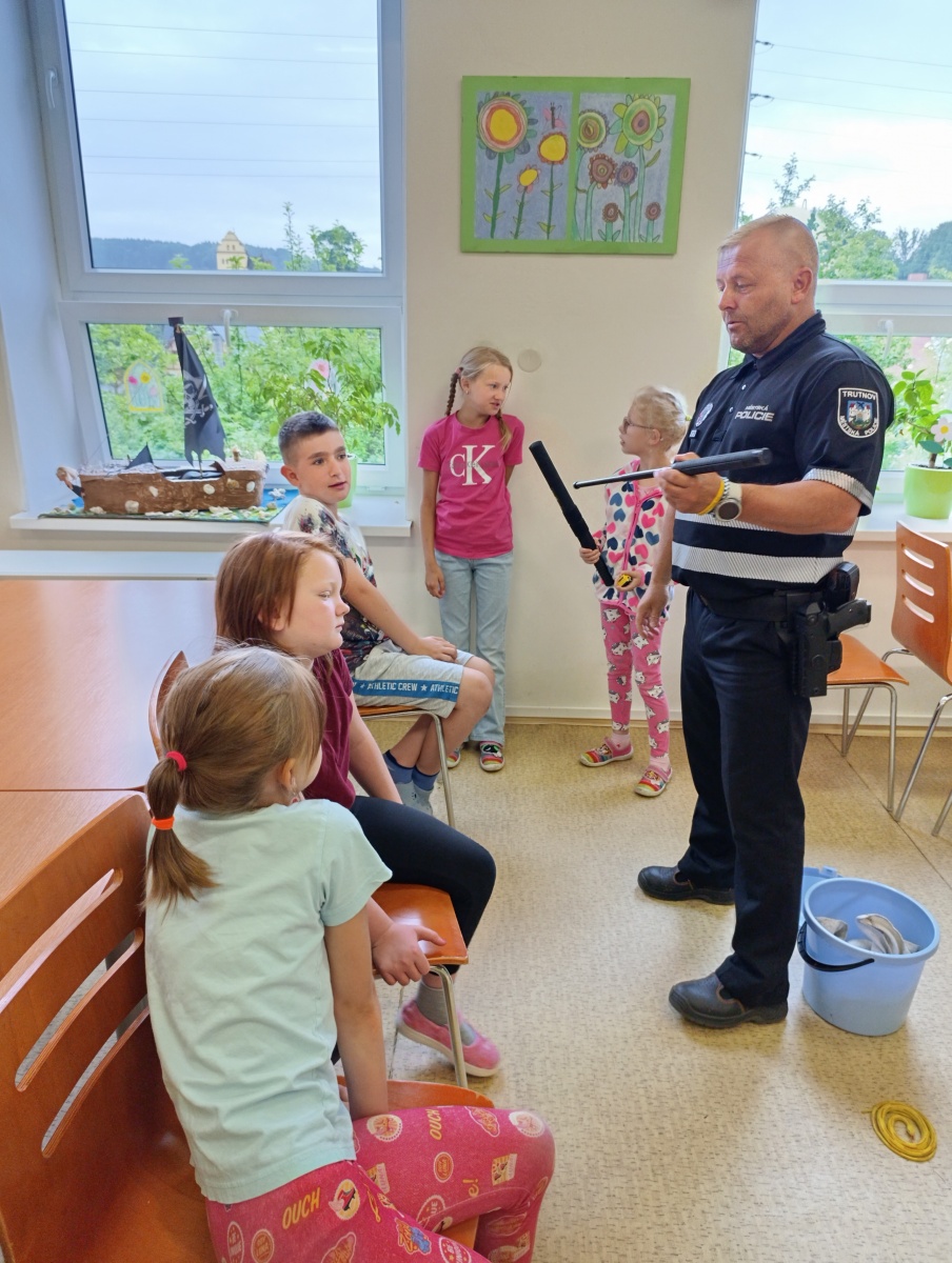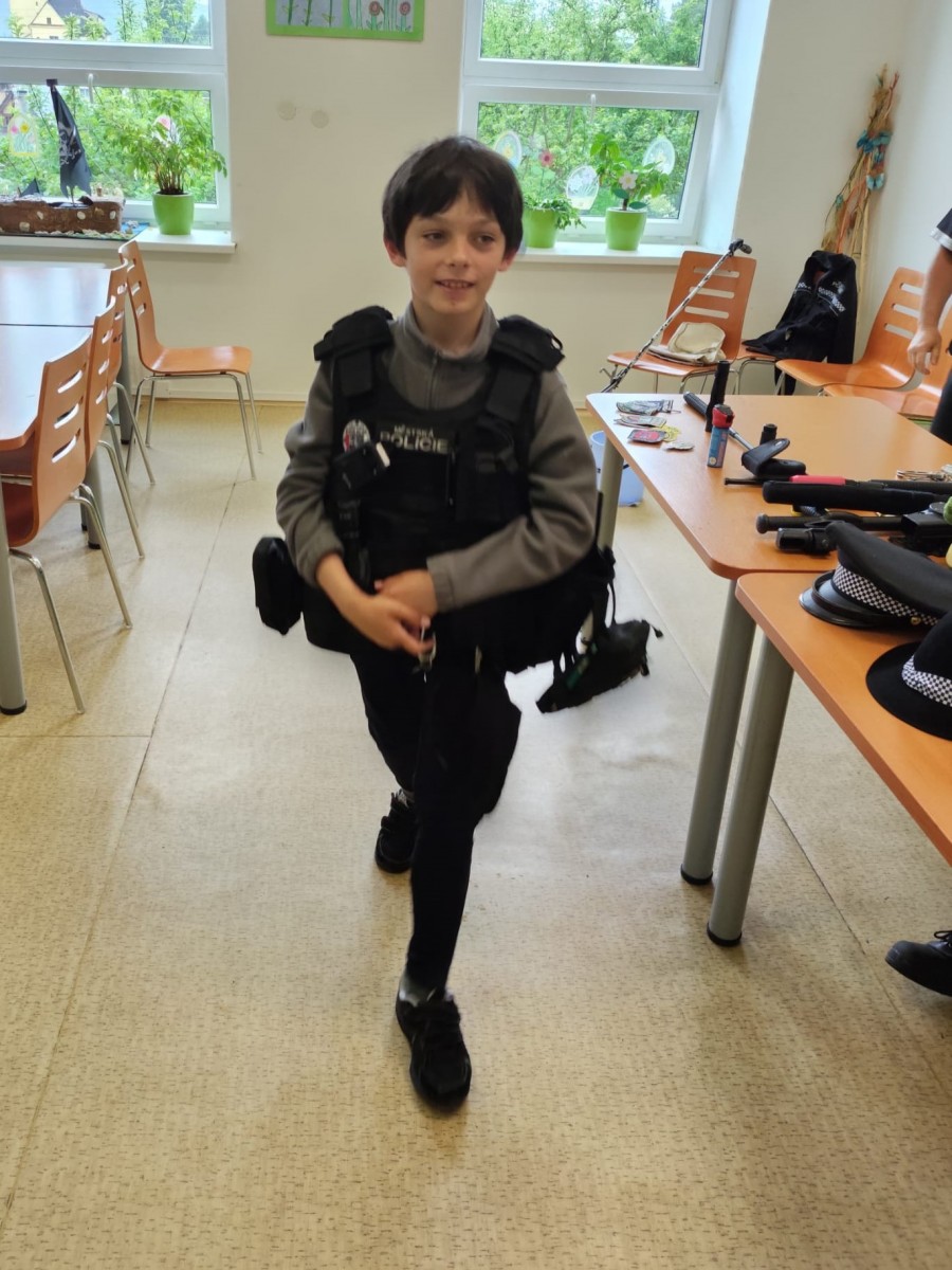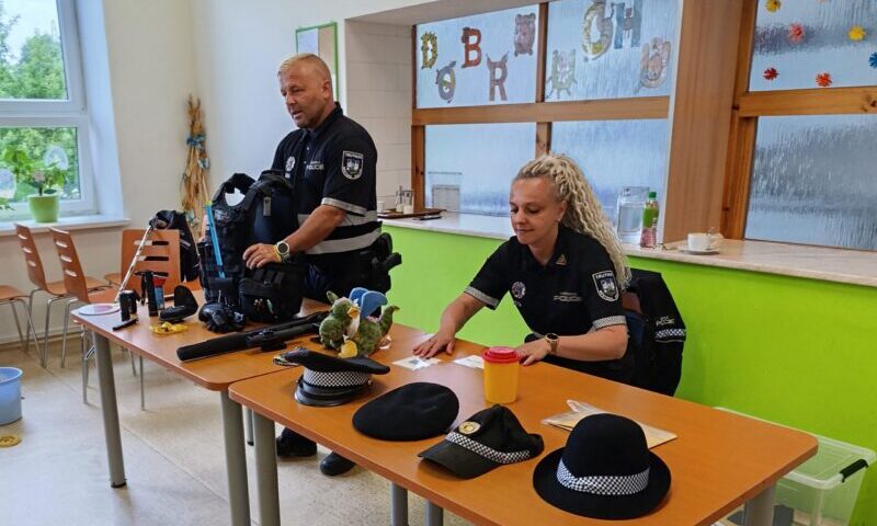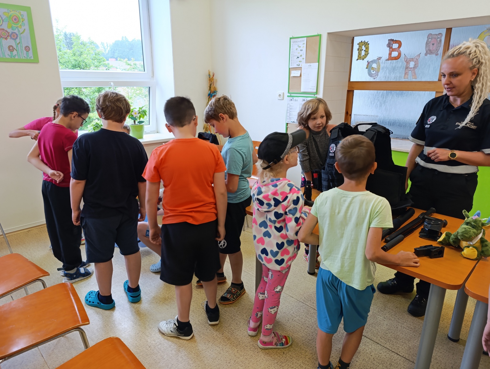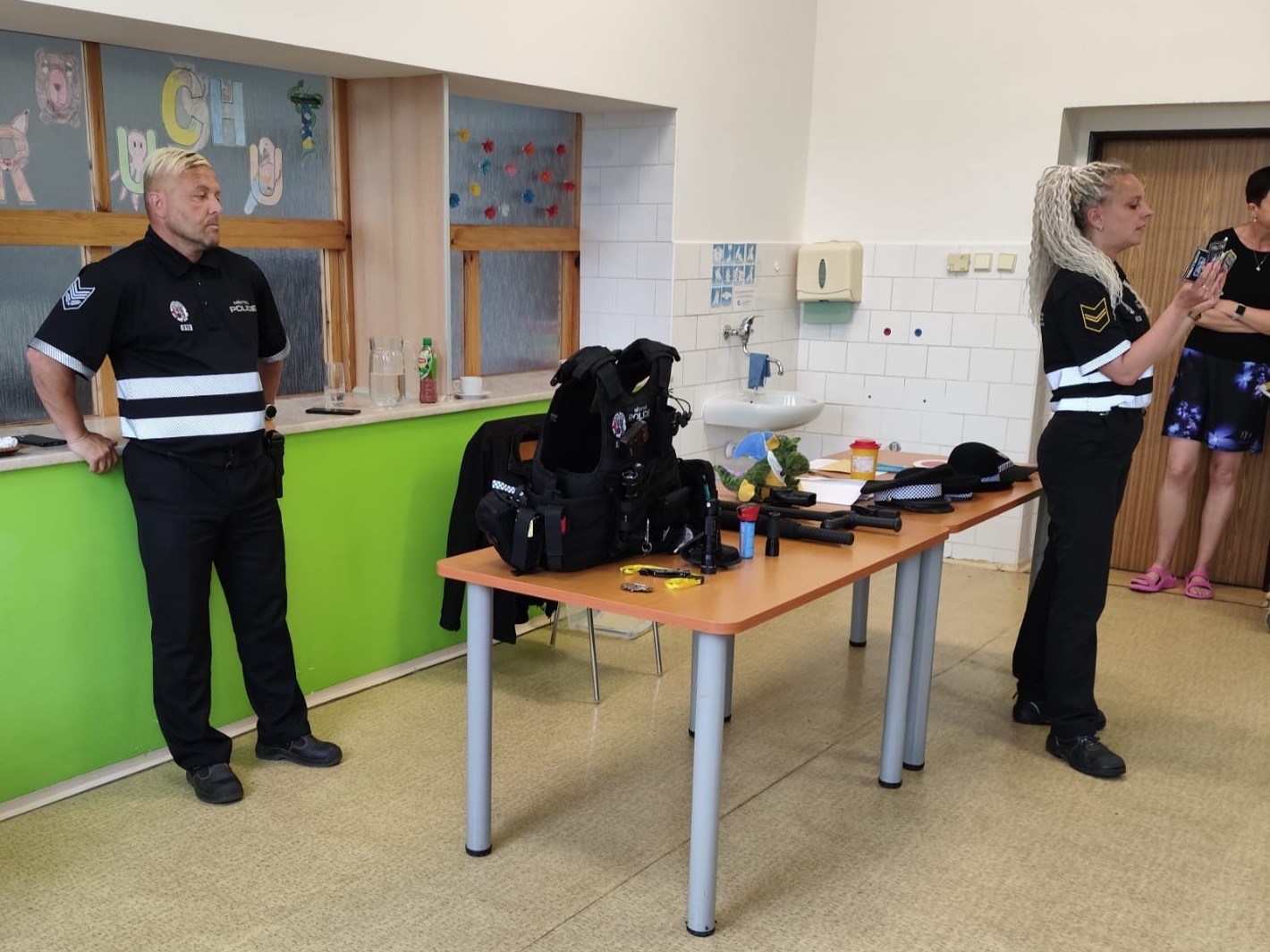 Nechyběla ani ukázka výstroje a výzbroje, včetně jmenovek, uniforem a dalšího vybavení. Děti měly možnost klást otázky a dozvědět se, jak mohou policisté pomáhat lidem v každodenním životě.