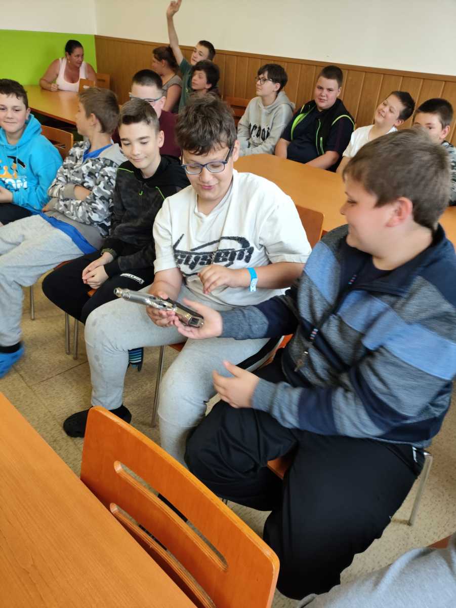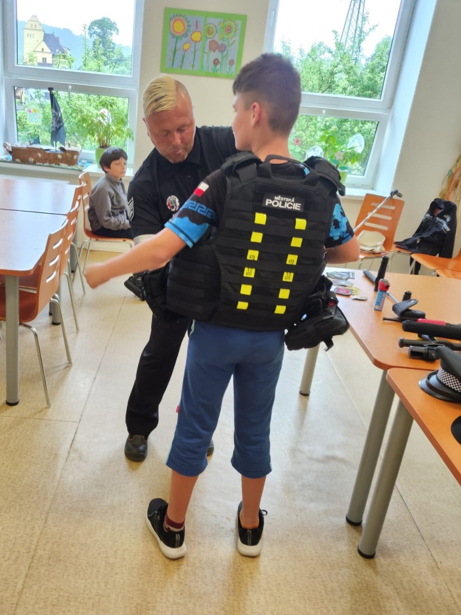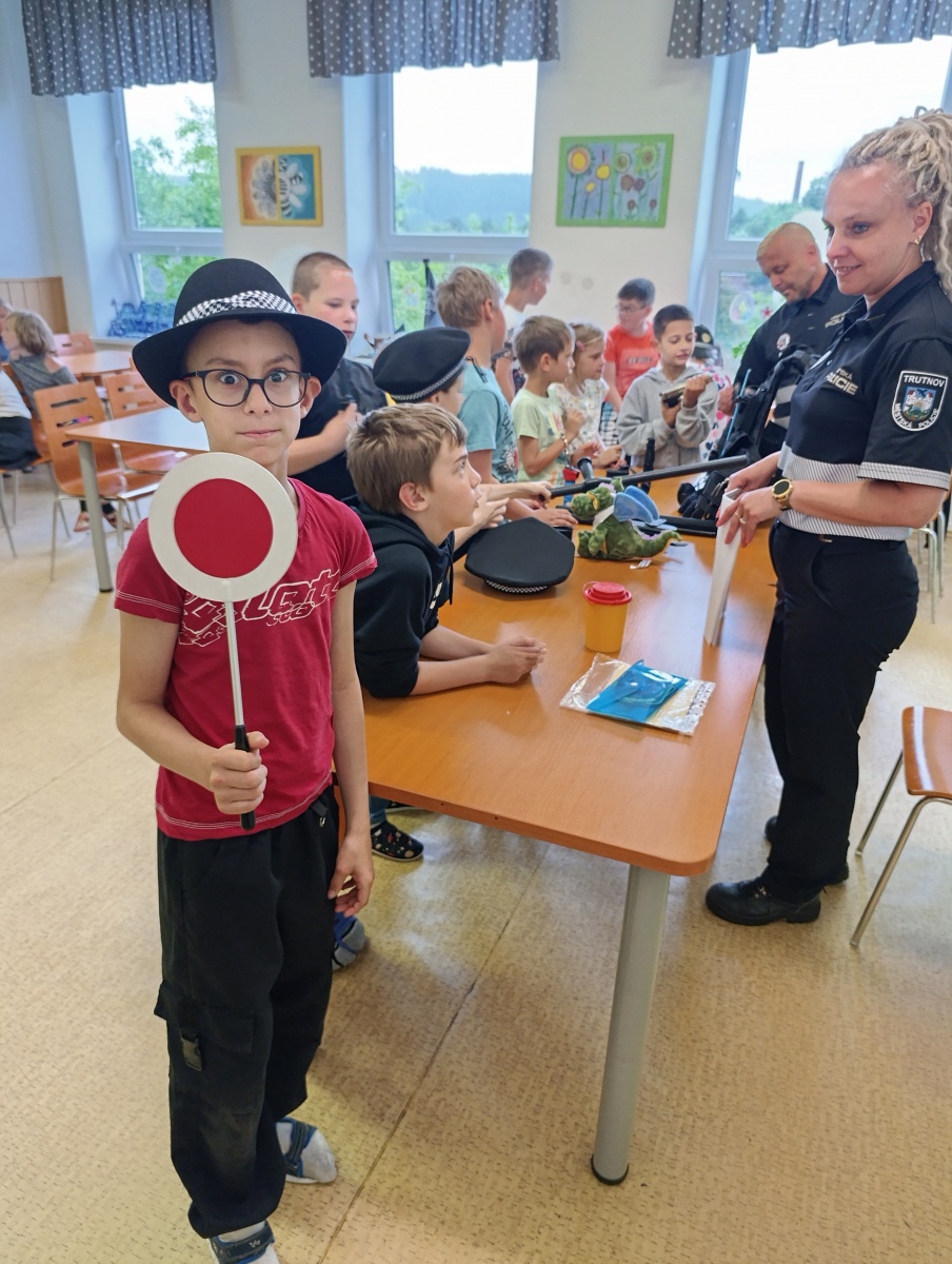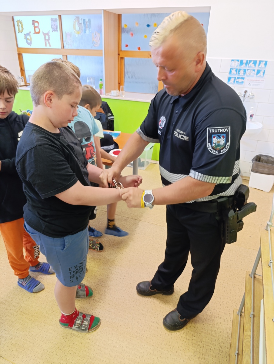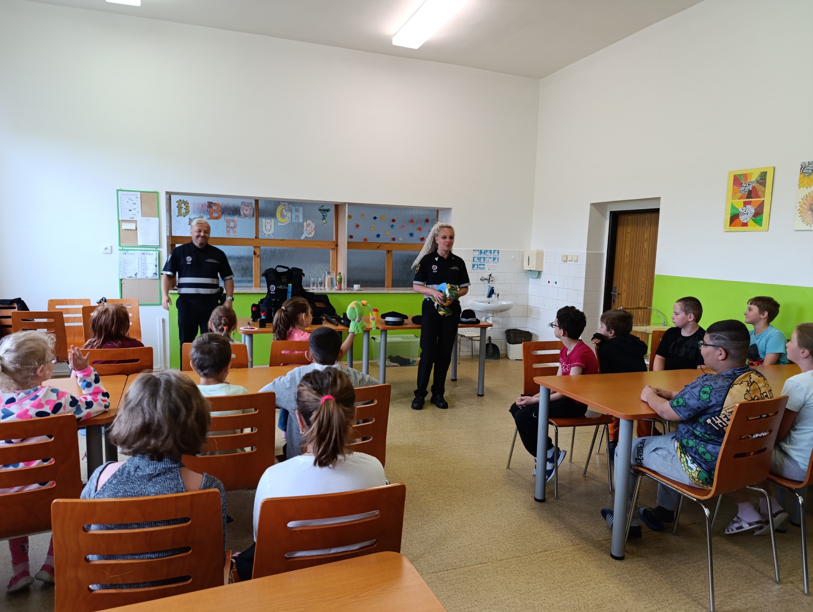 V pondělí 16. června navštívili naši školu dva příslušníci Městské policie Trutnov, aby žákům 1. stupně přiblížili, čemu se ve své službě věnují.