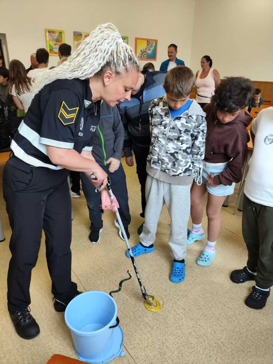 Během zajímavé přednášky děti zjistily, co všechno spadá do náplně práce městského strážníka – od dohledu nad bezpečností ve městě až po odchyt zvířat.