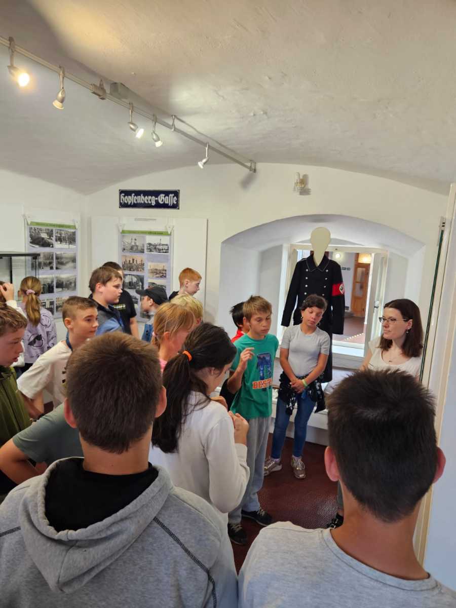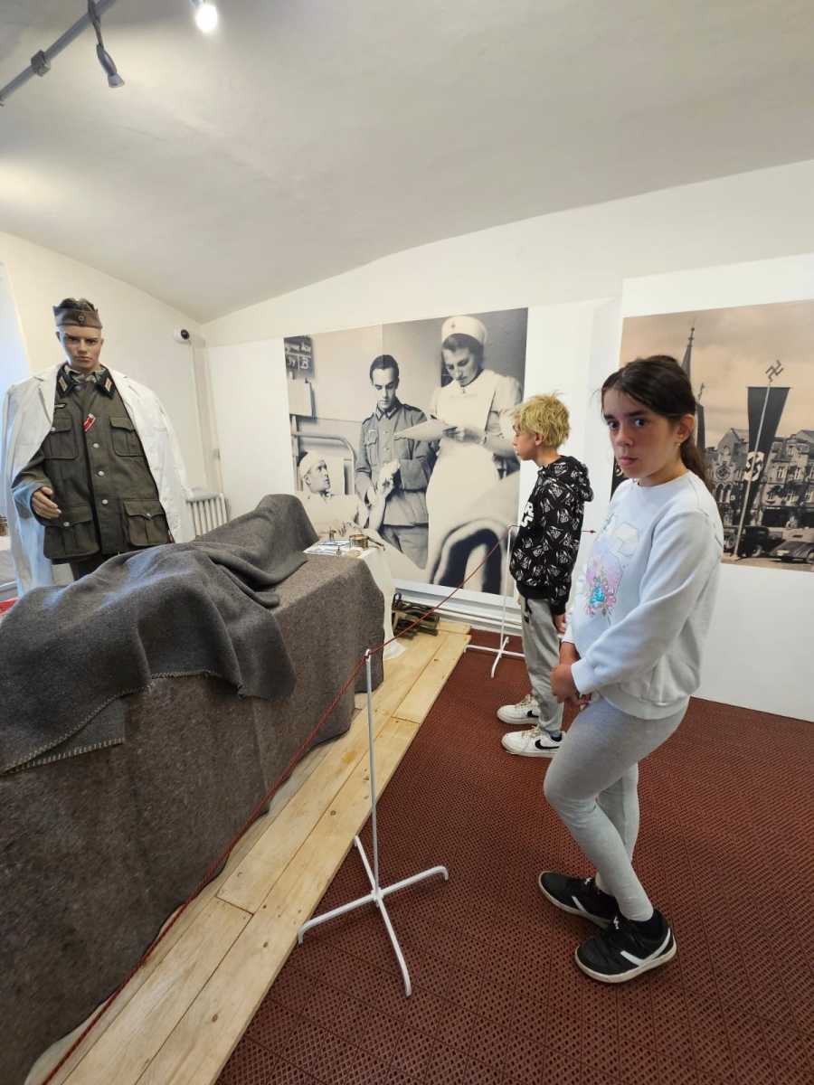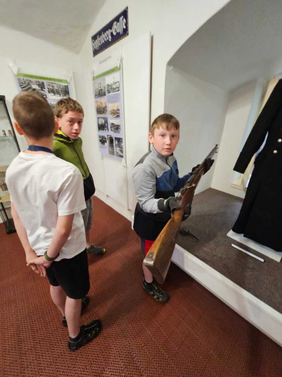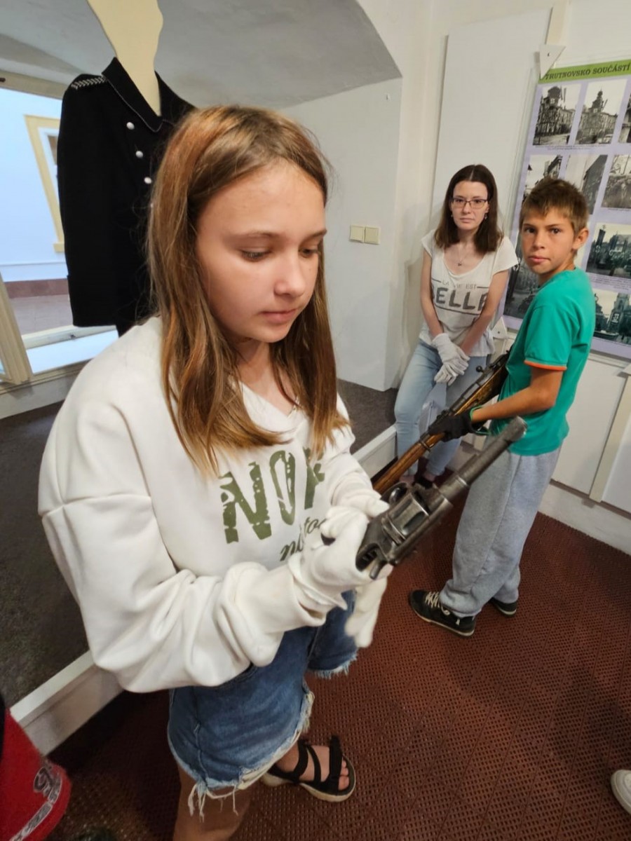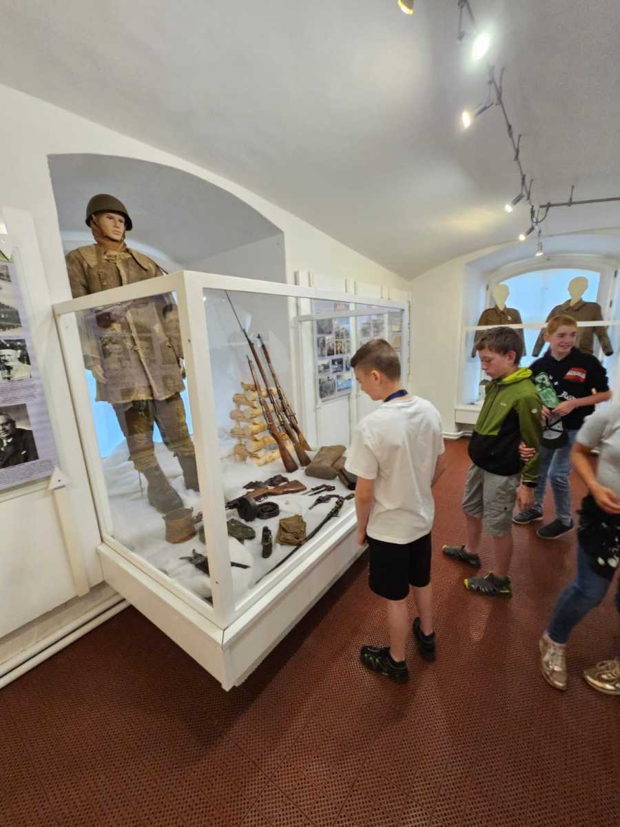 Poslední školní pondělí před letními prázdninami vyrazili čtvrťáci a páťáci na tajný výlet. Čekala na ně prohlídka výstavy V soukolí druhé světové války v Muzeu Podkrkonoší. Páťáci už ve vlastivědě tohle téma probírali a čtvrťákům se načerpané poznatky budou hodit v příštím roce. Po celý den provázely výletníky rozmary počasí. Déšť jim ale nezkazil náladu ani návštěvu cukrárny, kde si každý pochutnal na své oblíbené zmrzlině.