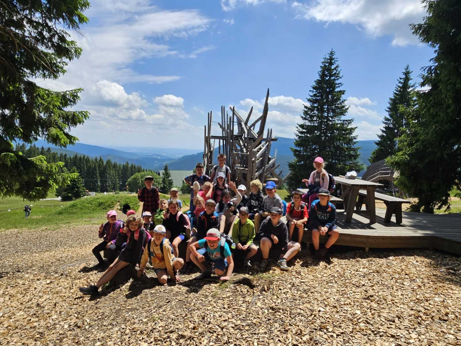 „Hurá, jedeme na výlet do Krkonoš!“ těšili se prvňáci, druháci, třeťáci i čtvrťáci. Čekala je horská túra ze Spáleného Mlýna k horní stanici lanovky na Portáškách. Tam si dosyta pohráli na krásných přírodních průlezkách, v tunelech i na skluzavkách. Prověřili svou obratnost, když prolézali tělem rysa nebo hada a probíhali po visutém chodníčku mezi čapími hnízdy. Zábavná byla i kuličková dráha. Při zpáteční cestě k autobusu, který čekal ve Velké Úpě, už výletníkům docházely síly. Vše ale zvládli a na konci si mohli říct: „Bylo to super!“