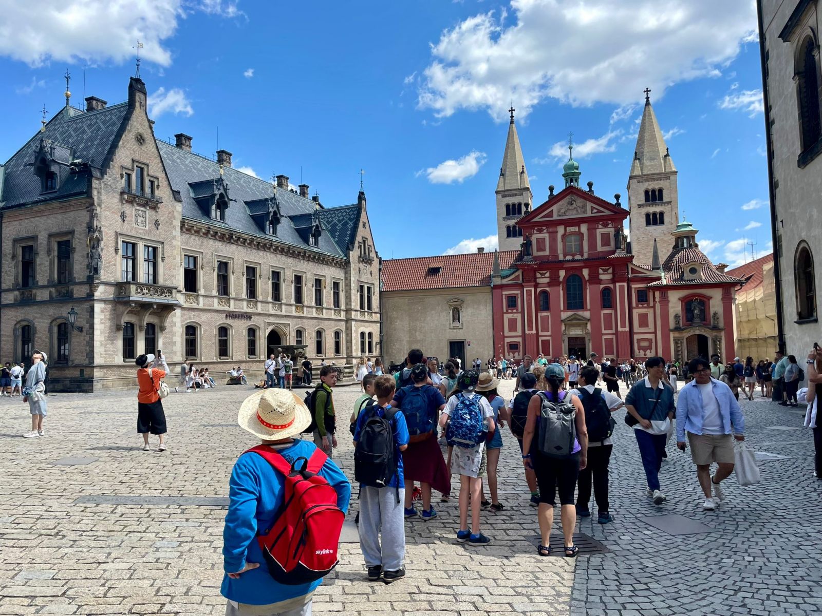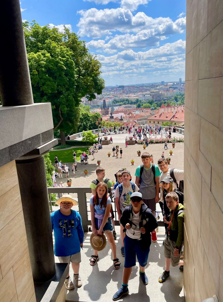 Také 5. A se vypravila na výlet do Prahy. Ráno nikdo nezaspal, a tak jsme se pohodlně přesunuli do našeho hlavního města. Metro i tramvaj na sebe hezky navazovaly a my jsme mohli stihnout plno věcí. Vše jsme zahájili prohlídkou Pražského hradu a jeho zahrad, poobědvali jsme na Kampě, přes Karlův most jsme přešli okolo sochy Vltavy na Staroměstské náměstí a v Domě U Zlatého prstenu si odpočinuli při interaktivní prohlídce věnované historii Prahy. Nakonec jsme si ještě prohlédli opravenou Fantovu budovu Hlavního nádraží a památník věnovaný Nicholasi Wintonovi.