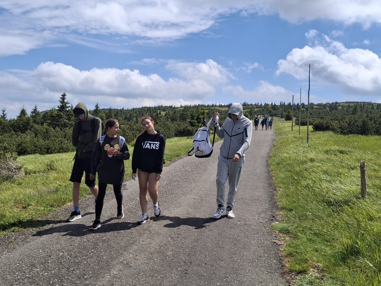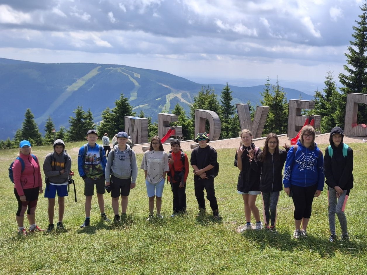 Koncem školního roku měli žáci druhého stupně jedinečnou příležitost zúčastnit se turistického kurzu v Krkonoších. Během dvou dnů na ně čekala náročná, ale krásná trasa. Vydali se lanovkou ze Špindlerova Mlýna na Zlaté návrší, došli až k Pramenům Labe a zpět se vraceli přes Labský důl. Celkově ušli úctyhodných 26 kilometrů. Večer si pak po zaslouženém výkonu poseděli u ohně a odpočinuli ve stanech, které si postavili pod sjezdovkou ve Svatém Petru.