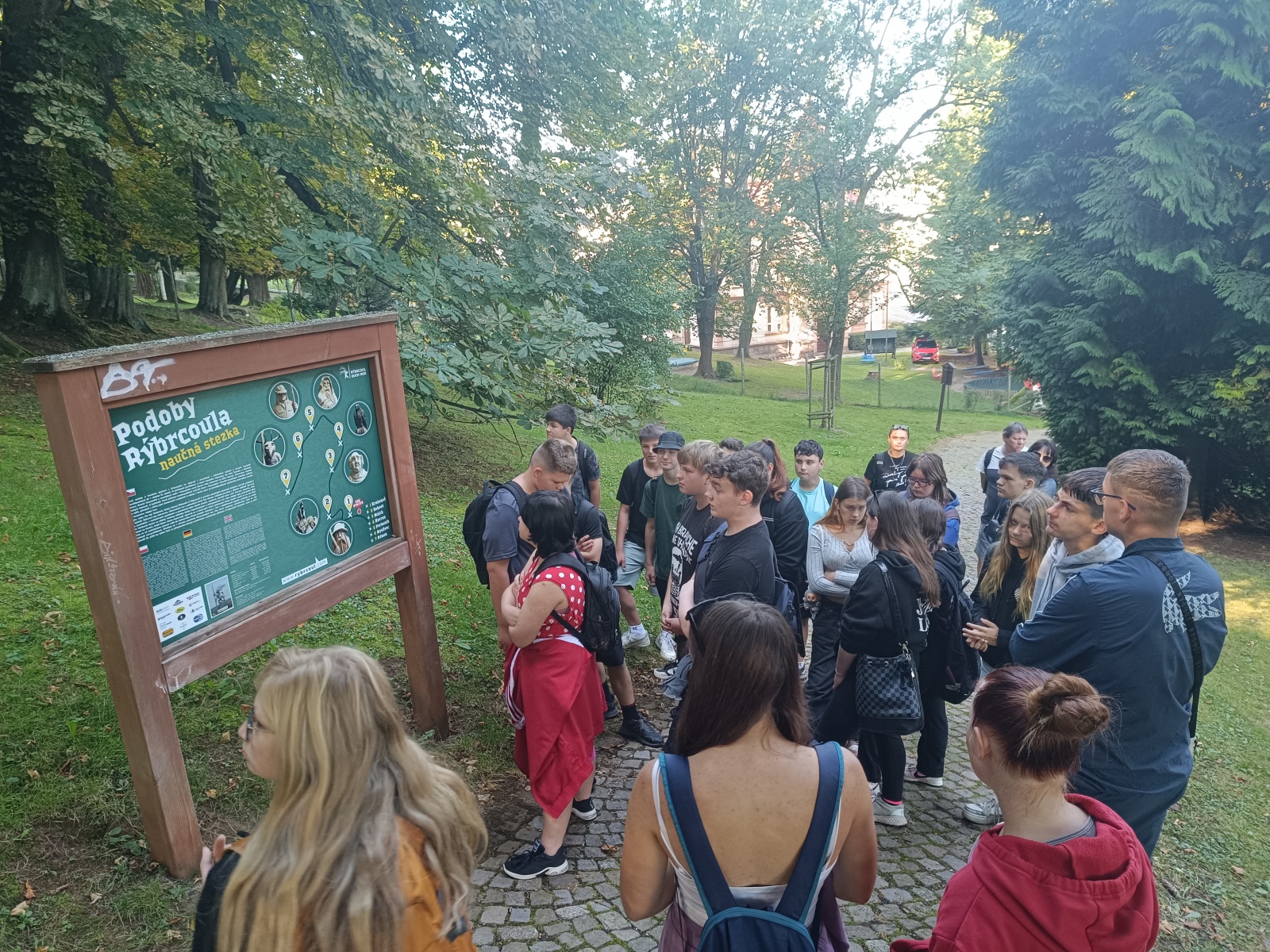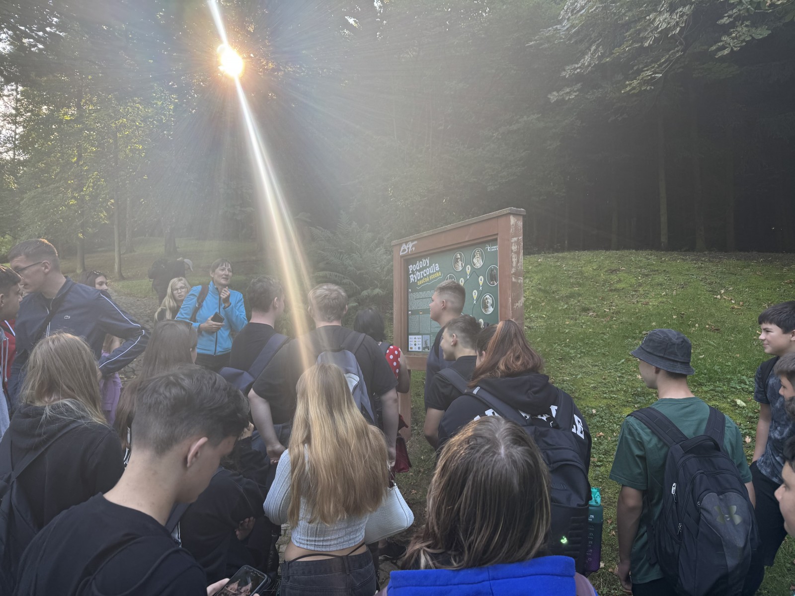 Turistická vycházka žáků osmého a devátého ročníku začala na Rýblcoulově stezce – nenápadné, ale kouzelné trase, která se vine lesem a nabízí nádherné výhledy na okolní krajinu. Cestou si žáci mohli všimnout informačních tabulí, které přibližují historii stezky i přírodní zajímavosti regionu, dozvěděli se něco o duchovi hor.