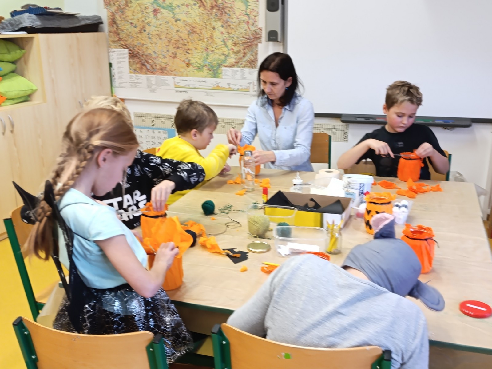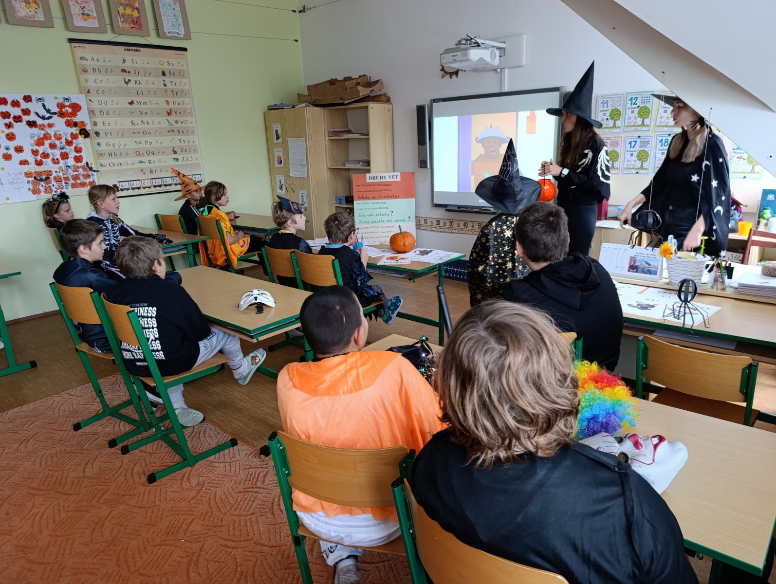 V pátek 24. října se naše škola proměnila v místo plné kouzel, strašidelné atmosféry a smíchu. Od 10:30 do 13:05 jsme společně slavili Halloween — svátek, který má kořeny v anglicky mluvících zemích, ale u nás si získává stále větší oblibu. Děti byly rozděleny do čtyř skupin a postupně se střídaly na různých stanovištích, kde je čekaly tematické aktivity plné tvořivosti, pohybu i jazykového dobrodružství.