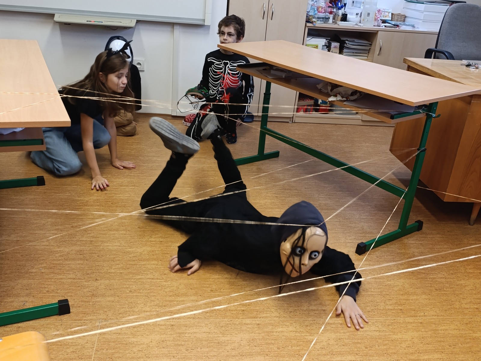 A protože Halloween není jen o strašení, ale i o pohybu, nechyběla ani akční výzva. Děti si vyzkoušely, jaké to je být netopýrem nebo létat jako čarodějnice. Aktivita „Fly like a witch“ je rozhýbala a přinesla spoustu radosti i smíchu.