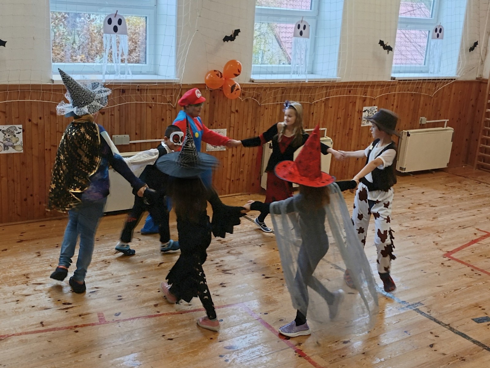 Na závěr se všechny skupiny spojily a vydaly se ven hledat poklad. Napětí a vzrušení provázelo každé hledání, a když se poklad konečně objevil, radost byla obrovská. Celý den jsme zakončili taneční diskotékou v tělocvičně, kde se děti pořádně vyřádily. Hudba, tanec a smích uzavřely naše halloweenské dobrodružství tím nejlepším možným způsobem. Byl to den plný fantazie, tvořivosti, pohybu a společné radosti. Už teď se těšíme na další společné akce!