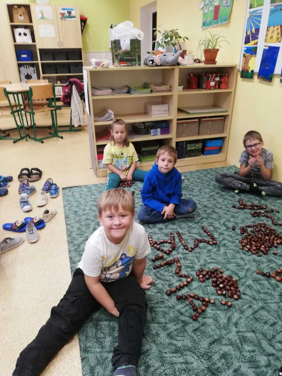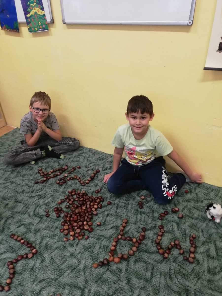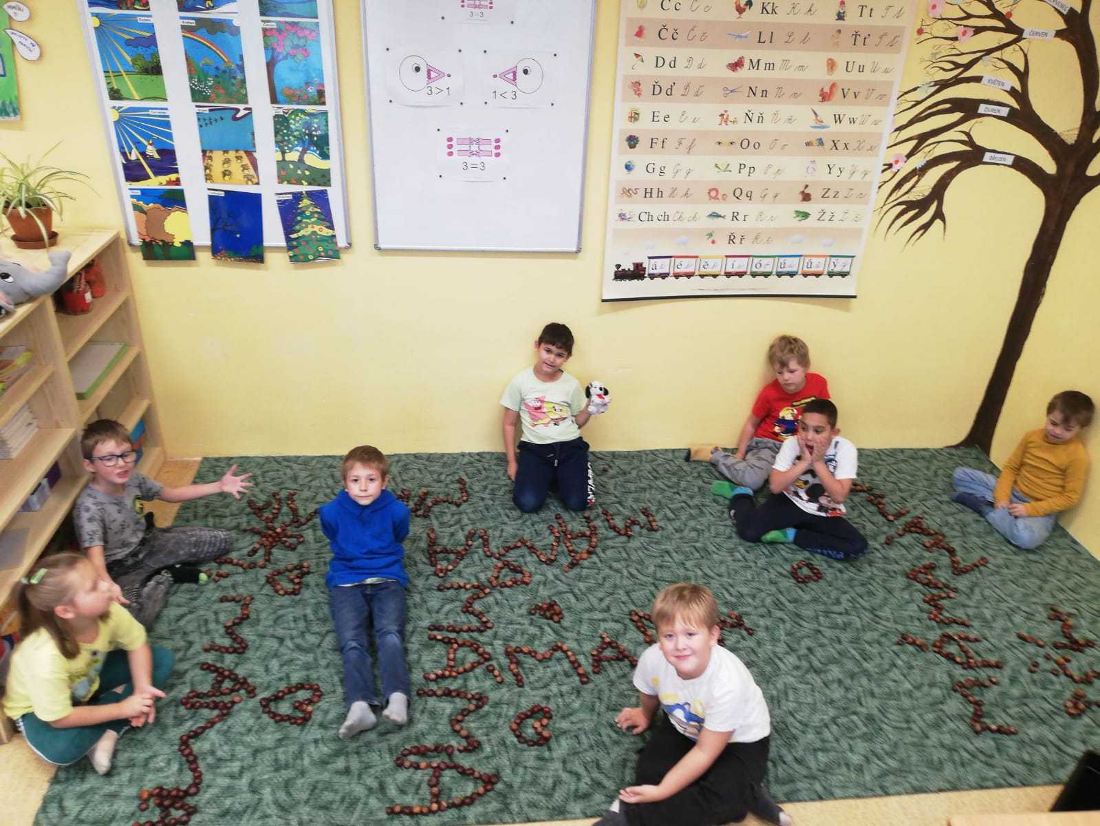 Podzim přinesl do naší první třídy nejen barevné listí, ale i spoustu nápadů na tvoření. Když jsme si do školy přinesli plnou tašku kaštánků, rozhodli jsme se, že je využijeme při tvorbě písmen, slabik a dokonce i celých slov. Na začátku jsme si zopakovali písmenka, která už umíme, a pak začalo tvoření. Děti skládaly kaštánky do tvarů písmen na lavicích i na koberci. Některé písmenko se povedlo hned, jiné vyžadovalo trochu trpělivosti a přesnosti. Postupně jsme z písmen skládali slabiky a jednoduchá slova (např. máma). Děti pracovaly ve dvojicích nebo malých skupinkách, navzájem si pomáhaly a společně přemýšlely, jak písmenka správně poskládat. Kromě čtení a psaní jsme tak trénovali i spolupráci, tvořivost a jemnou motoriku. Netvořili jsme však jen z kaštánků, ale také z modelíny nebo knoflíků. A jak nám šla práce od ruky, můžete vidět na fotkách.