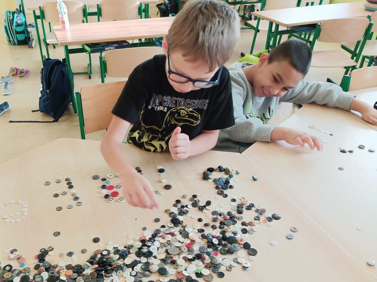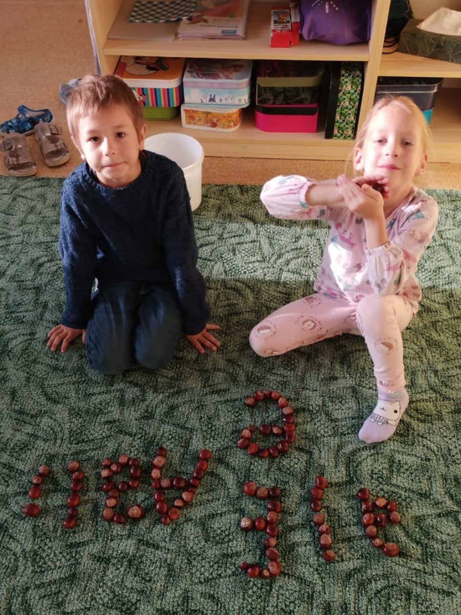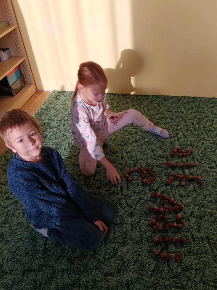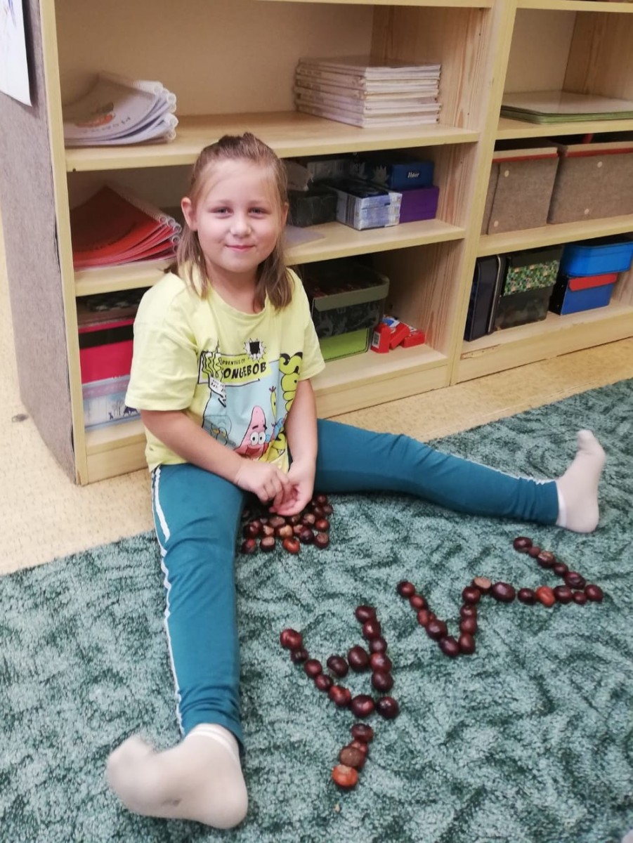 Podzim přinesl do naší první třídy nejen barevné listí, ale i spoustu nápadů na tvoření. Když jsme si do školy přinesli plnou tašku kaštánků, rozhodli jsme se, že je využijeme při tvorbě písmen, slabik a dokonce i celých slov. Na začátku jsme si zopakovali písmenka, která už umíme, a pak začalo tvoření. Děti skládaly kaštánky do tvarů písmen na lavicích i na koberci. Některé písmenko se povedlo hned, jiné vyžadovalo trochu trpělivosti a přesnosti. Postupně jsme z písmen skládali slabiky a jednoduchá slova (např. máma). Děti pracovaly ve dvojicích nebo malých skupinkách, navzájem si pomáhaly a společně přemýšlely, jak písmenka správně poskládat. Kromě čtení a psaní jsme tak trénovali i spolupráci, tvořivost a jemnou motoriku. Netvořili jsme však jen z kaštánků, ale také z modelíny nebo knoflíků. A jak nám šla práce od ruky, můžete vidět na fotkách.