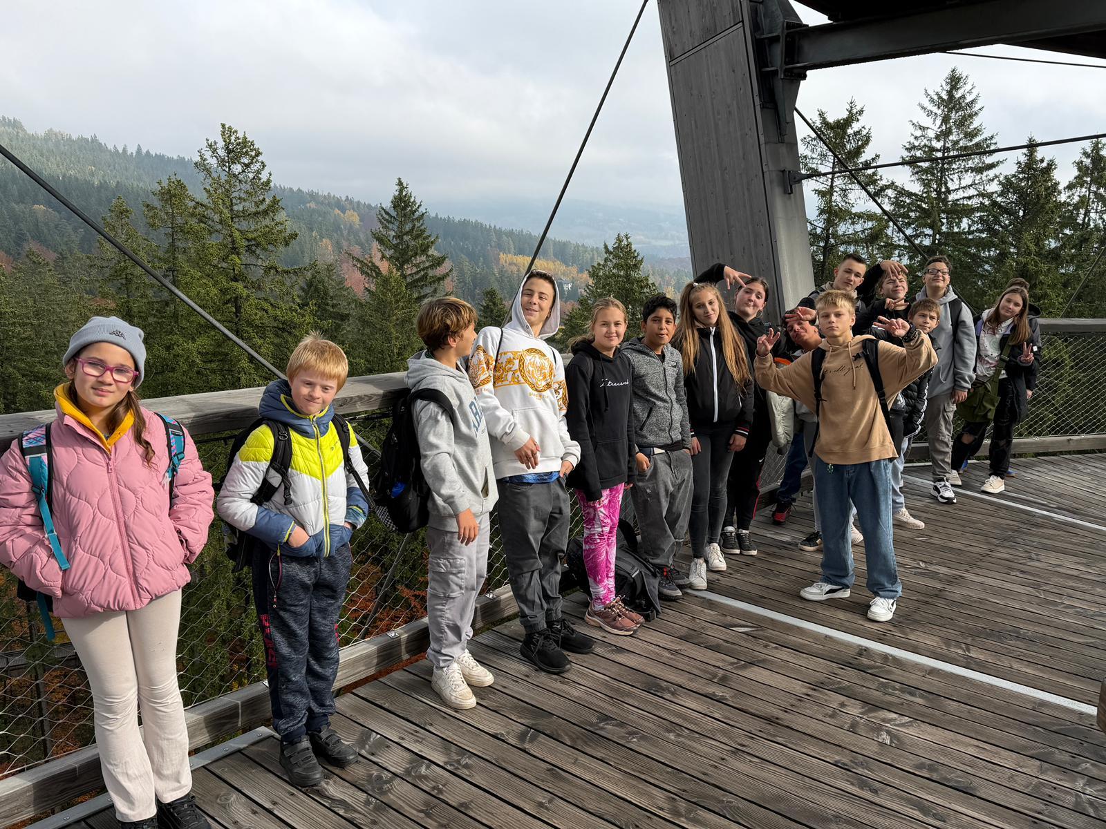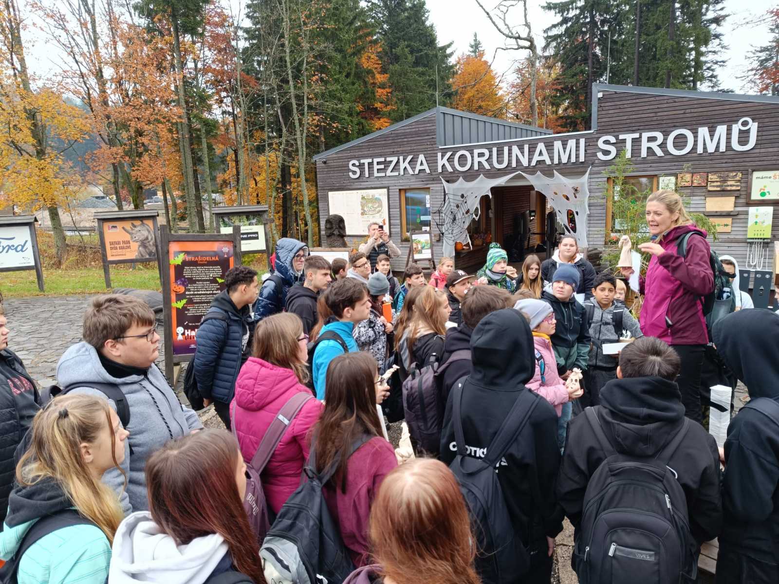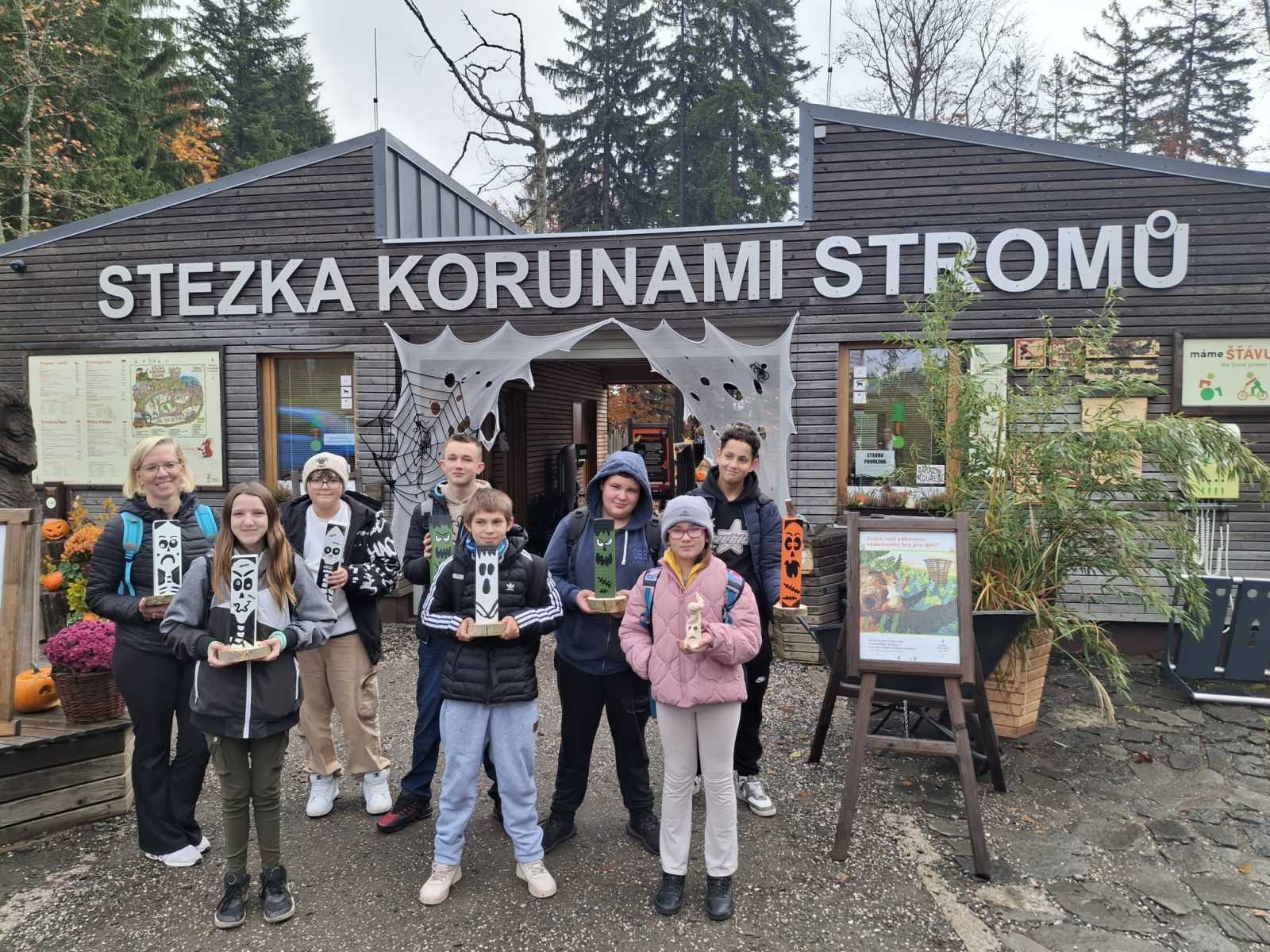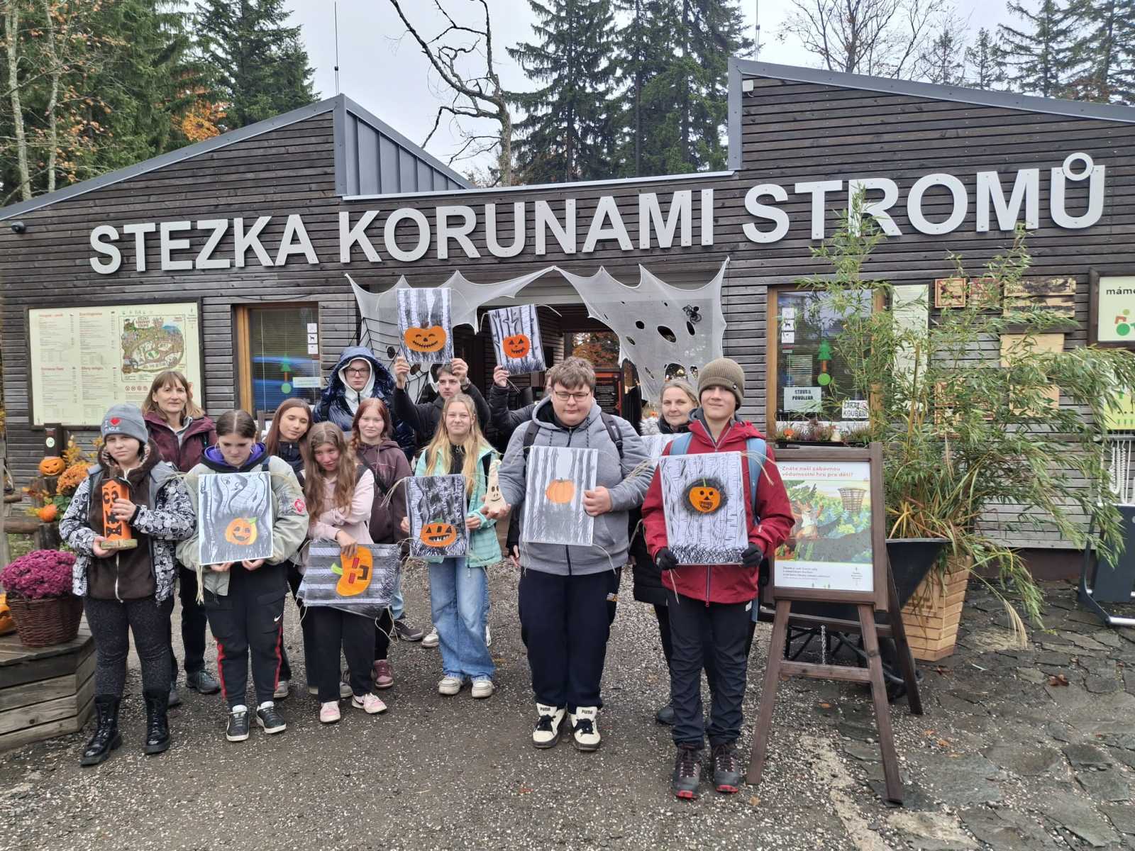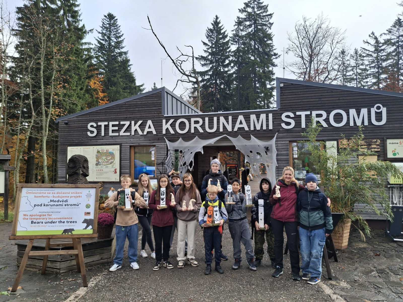 Dne 23. října se žáci 2. stupně vydali do Janských Lázní na Stezku korunami stromů. Přivezli si vlastní halloweenské výtvory, kterými pomohli vyzdobit stezku, a měli tak vstup zdarma. Užili si klouzačku uvnitř věže i sítě vysoko mezi stromy s krásným výhledem na Krkonoše. Výlet se vydařil a všichni si odnesli skvělé zážitky. Děkujeme zaměstnancům Stezky za milé přijetí a spolupráci.