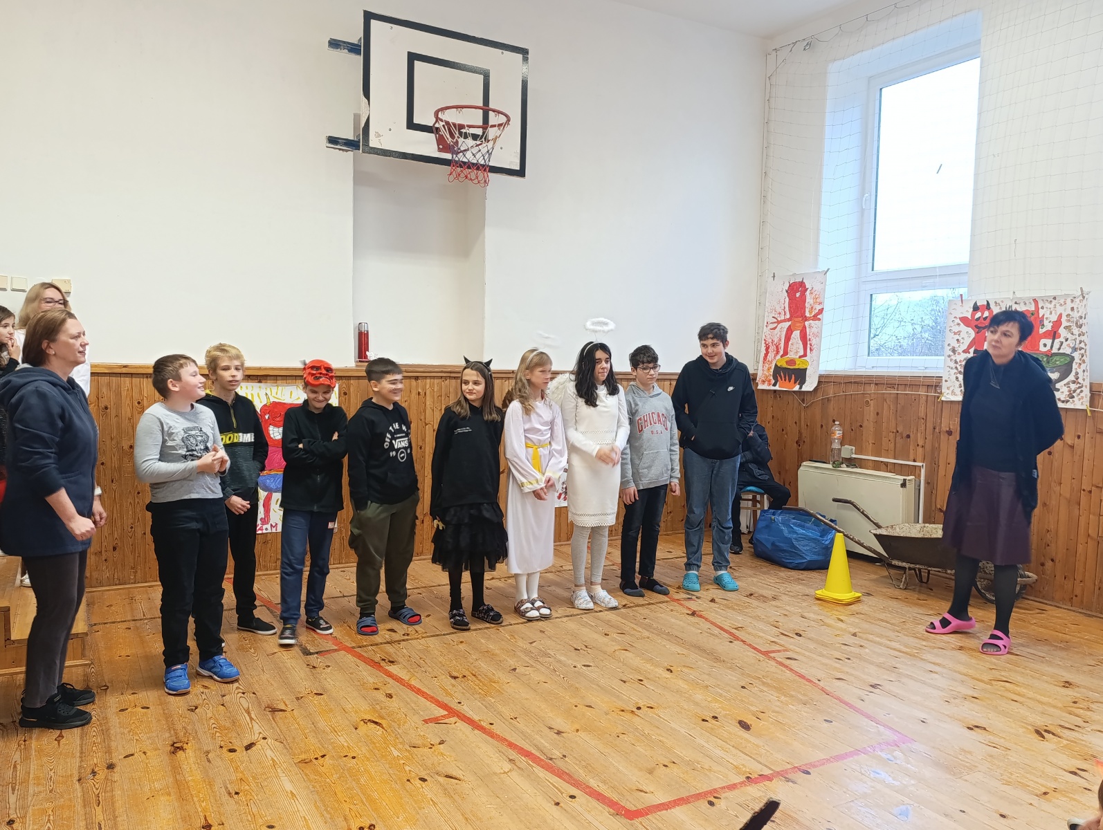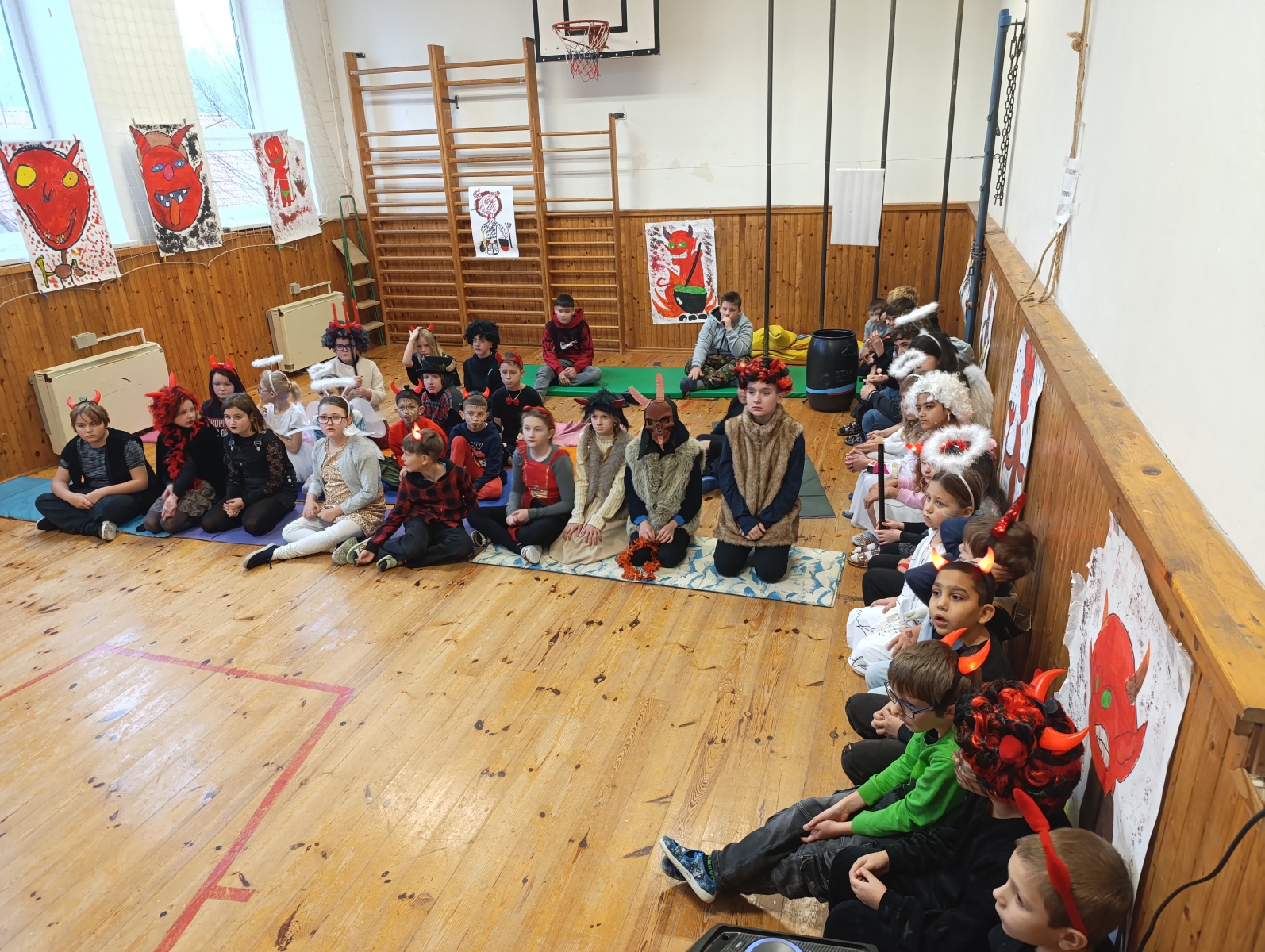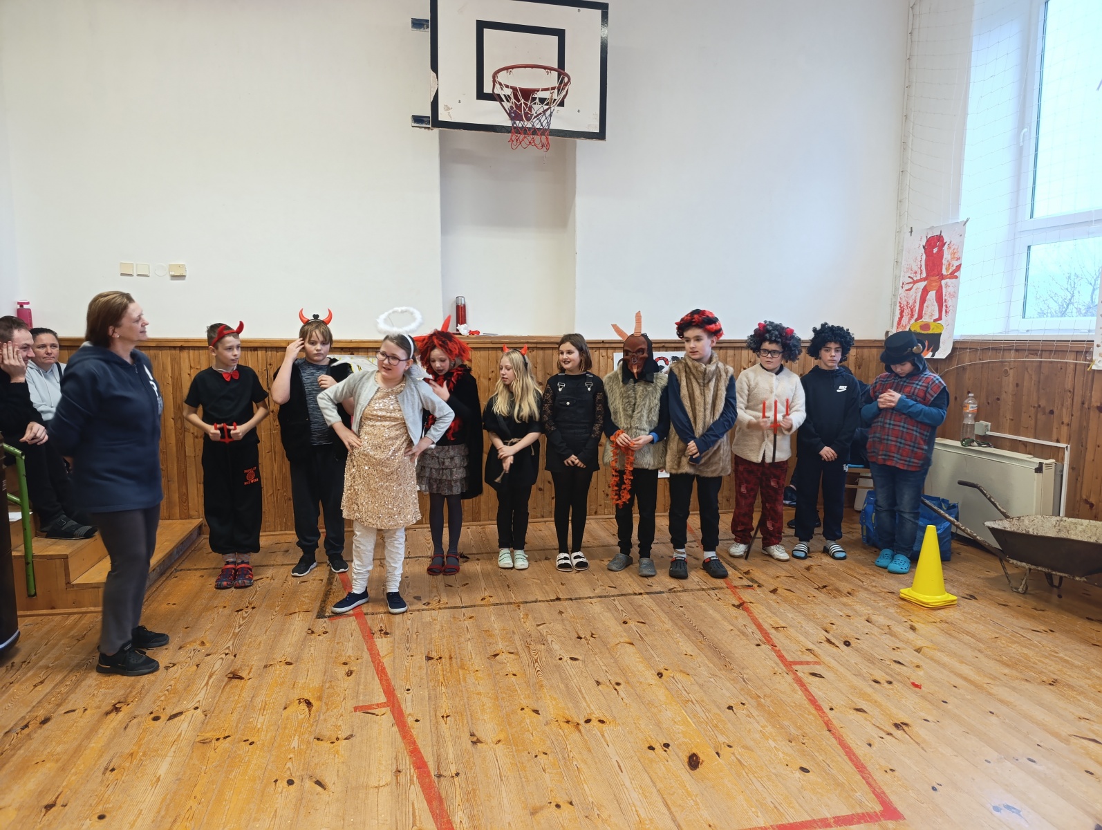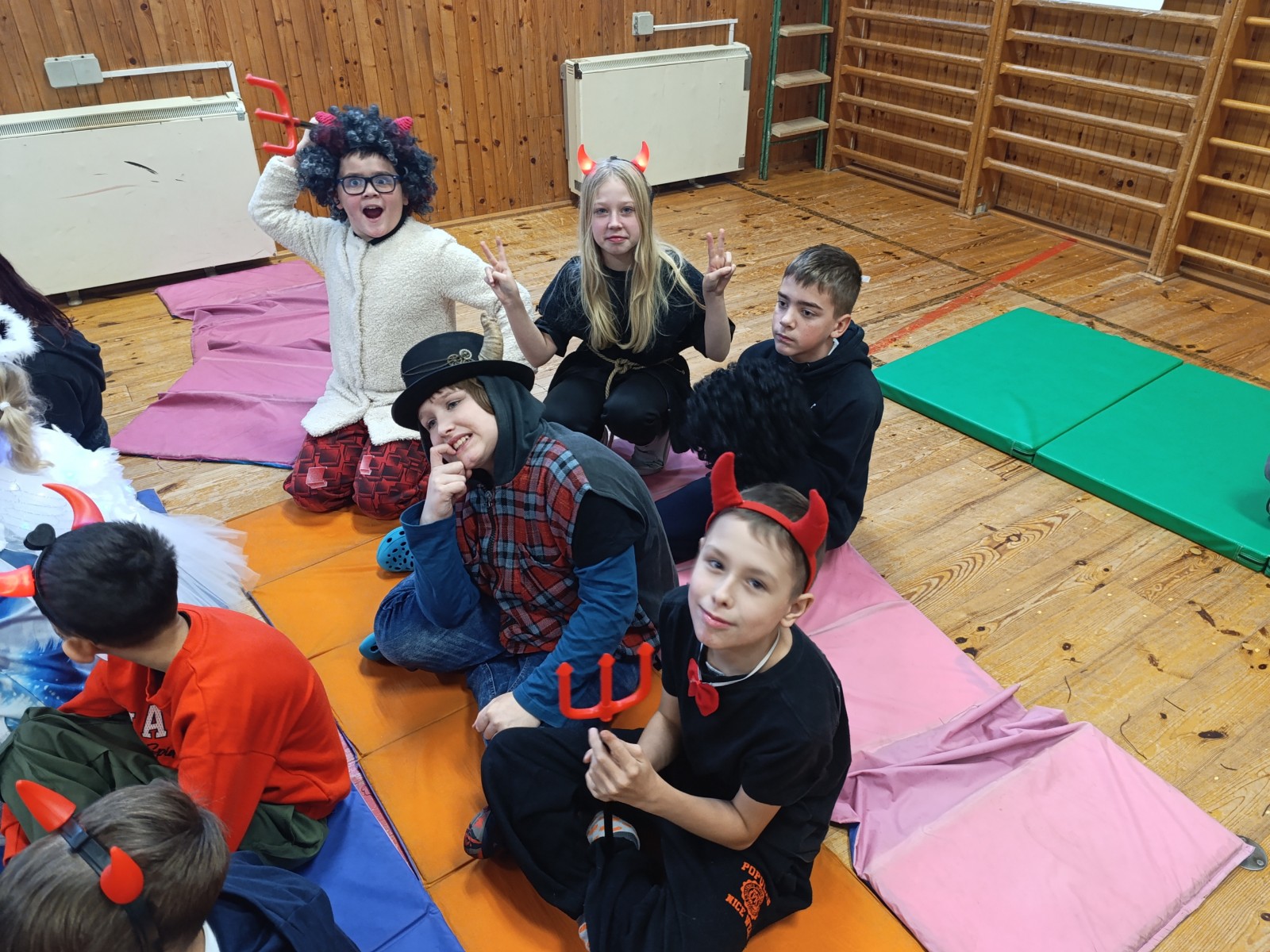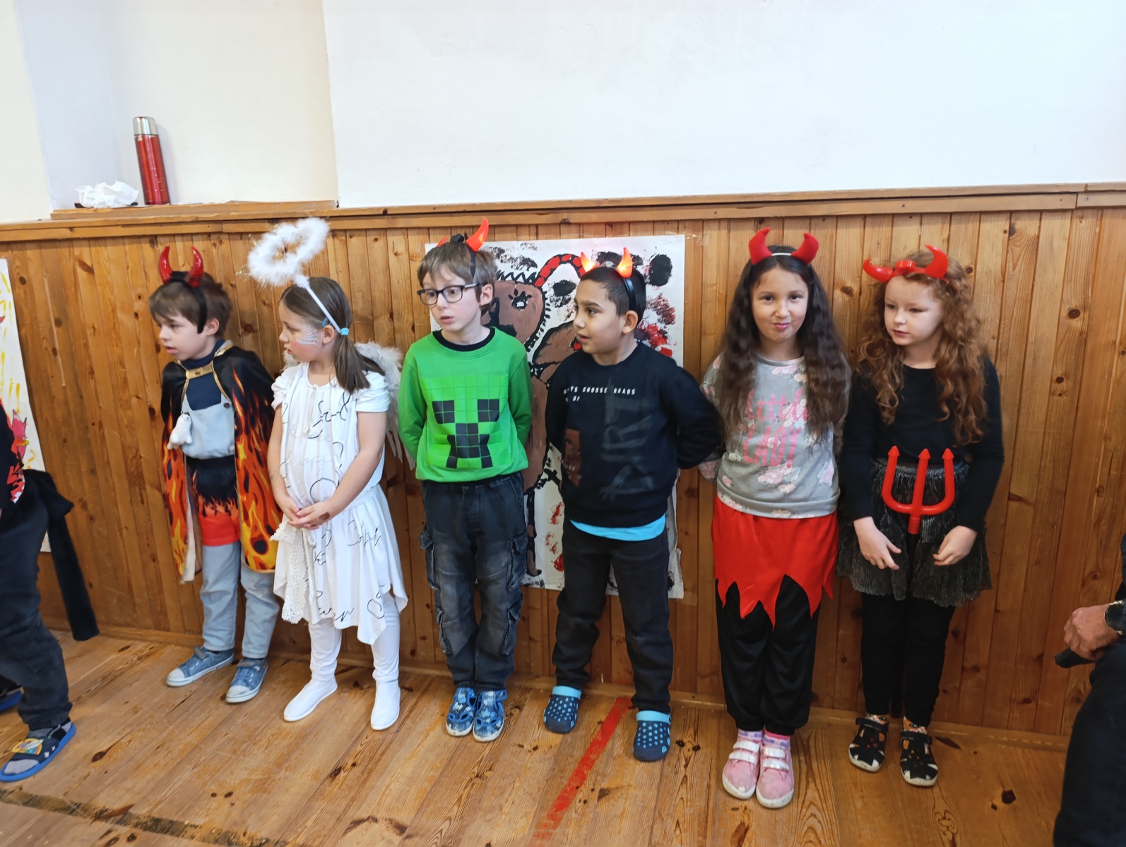 Někteří si oblékli sněhově bílé kostýmy, nasadili si svatozáře a stali se z nich jemní andílci, kteří rozdávali úsměvy a šířili kolem sebe klid a radost. Jiní se se stejným elánem převlékli za čerty – s rohy, ohnivými ocásky i načerněnými tvářemi. Nadšení bylo vidět na každém kroku, ať už někdo patřil na „nebeskou“ nebo „pekelnou“ stranu.