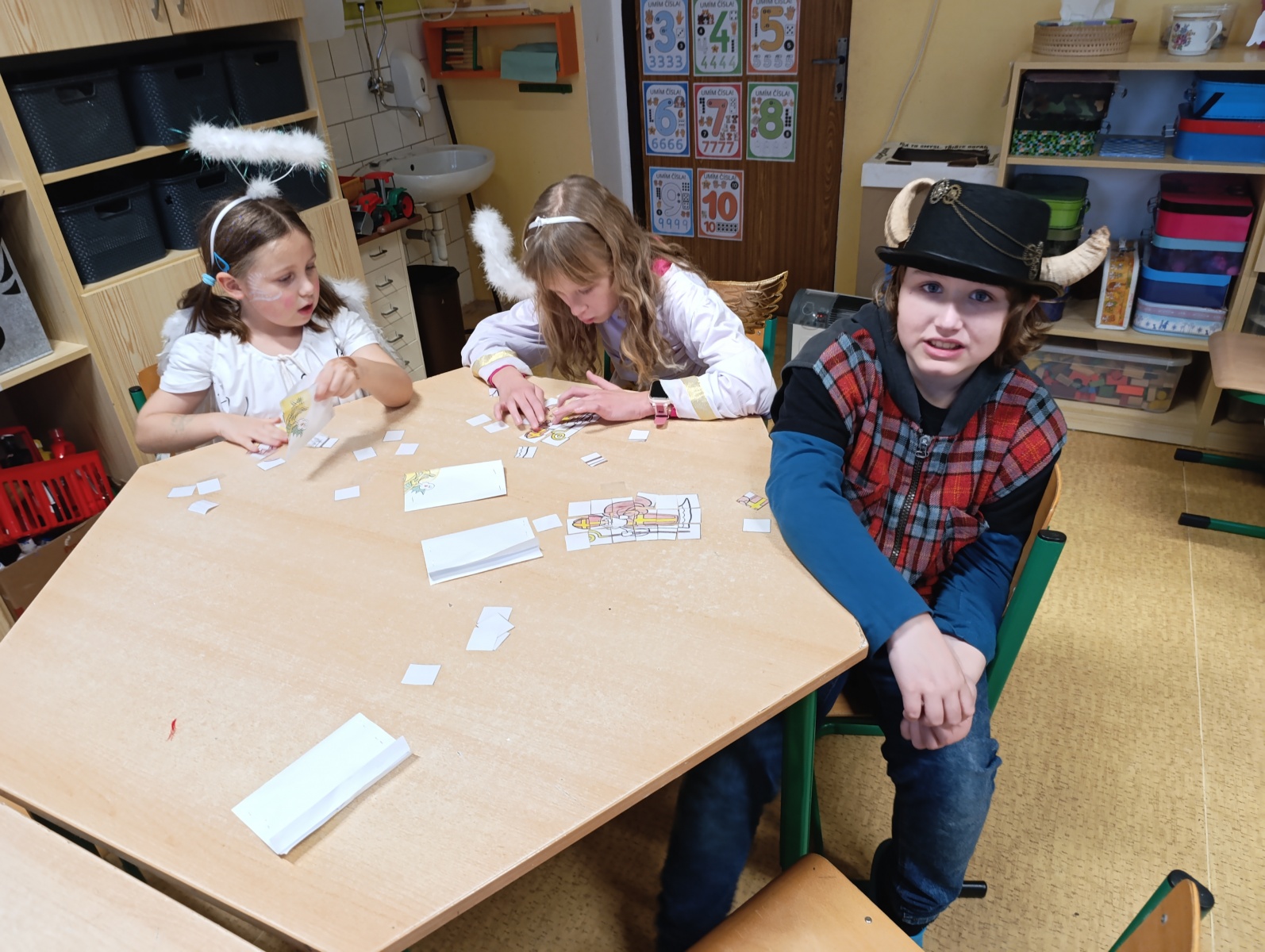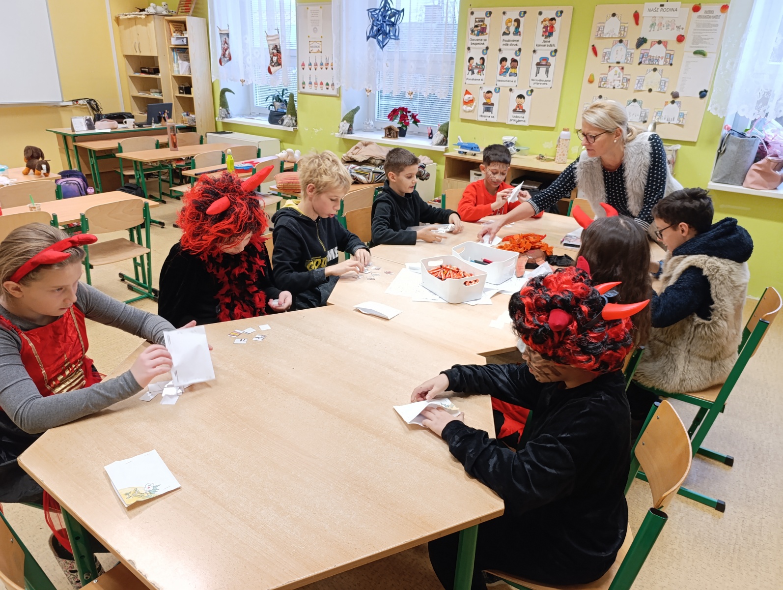 Mikulášské dopoledne u nás letos proběhlo v opravdu kouzelné atmosféře. Už od rána 5. prosince panovala ve škole slavnostní nálada. Děti se na tento den pečlivě připravovaly a s nadšením se proměnily v anděly nebo čerty, čímž vytvořily pestrou a hravou směsici dobrých i zlých bytostí.
